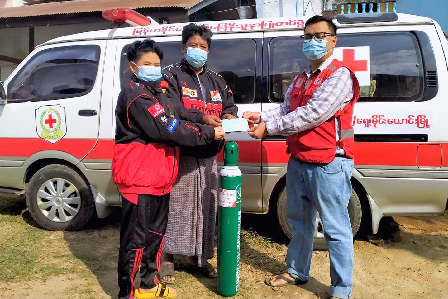 ရှမ်းပြည်နယ်အရှေ့ပိုင်း တာချီလိတ်ခရိုင် မိုင်းယောင်းမြို့နယ် ကြက်ခြေနီသူနာပြု တပ်ဖွဲ့အတွက် အရေးပေါ်ရှာဖွေကယ်ဆယ်ရေး လုပ်ငန်းများတွင် အသုံးပြုနိုင်ရန် အောက်စီဂျင် ၁၀ လီတာဘူး တစ်ဘူးကို အမှတ်(၈)ရပ်ကွက်မှ မမေမြတ်နိုးအေးက ယမန်နေ့တွင် သွားရောက်လှူဒါန်းခဲ့ကြောင်း သိရသည်။