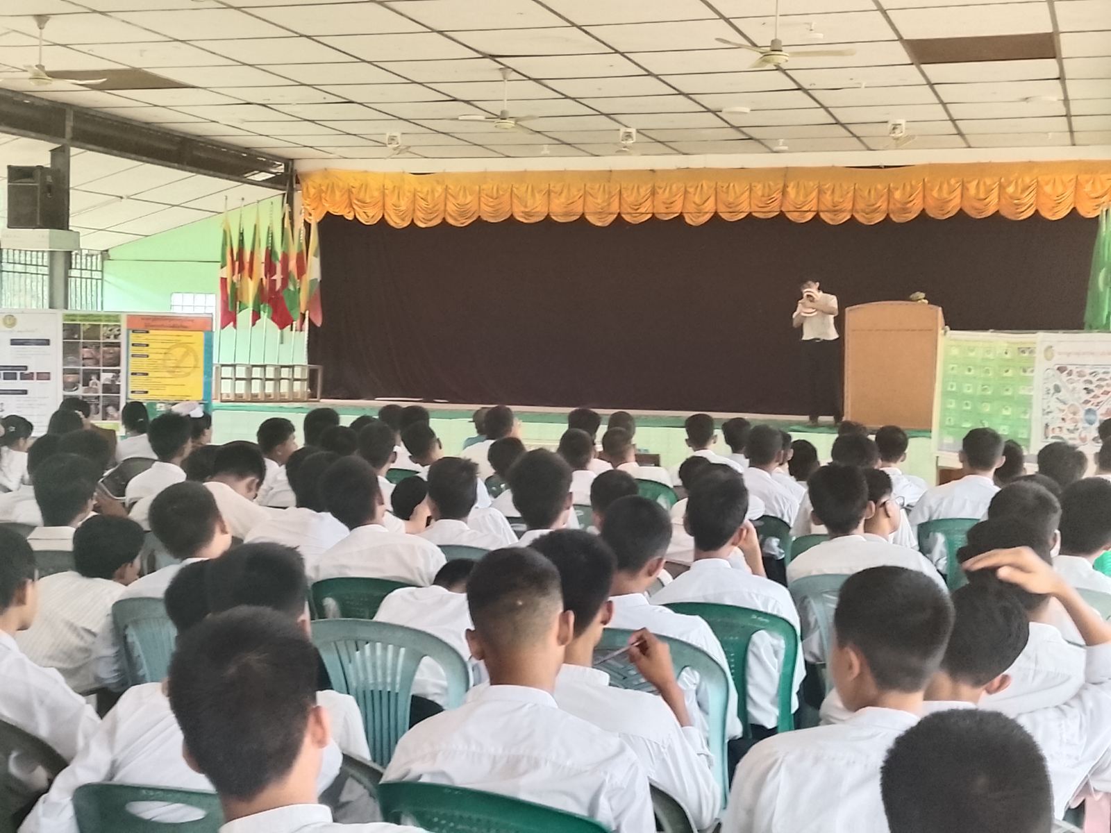 အခမ်းအနားတွင် မြို့နယ်ပြည်သူ့ကျန်းမာရေးဦးစီးဌာနမှ မြို့နယ်ဆရာဝန်ကြီး ဒေါက်တာဆွေဇင်ဝင်းက လိင်မှတစ်ဆင့်ကူးစက်တတ်သောရောဂါများအကြောင်းကိုလည်းကောင်း၊ သွားနှင့်ခံတွင်းဆရာဝန်ဒေါက်တာဇော်ရဲထက်က သွားနှင့်ခံတွင်းဆိုင်ရာကျန်းမာရေးအကြောင်းကိုလည်းကောင်း အသိပညာပေးဟောပြောခြင်းတို့ကိုဆောင်ရွက်သည်။