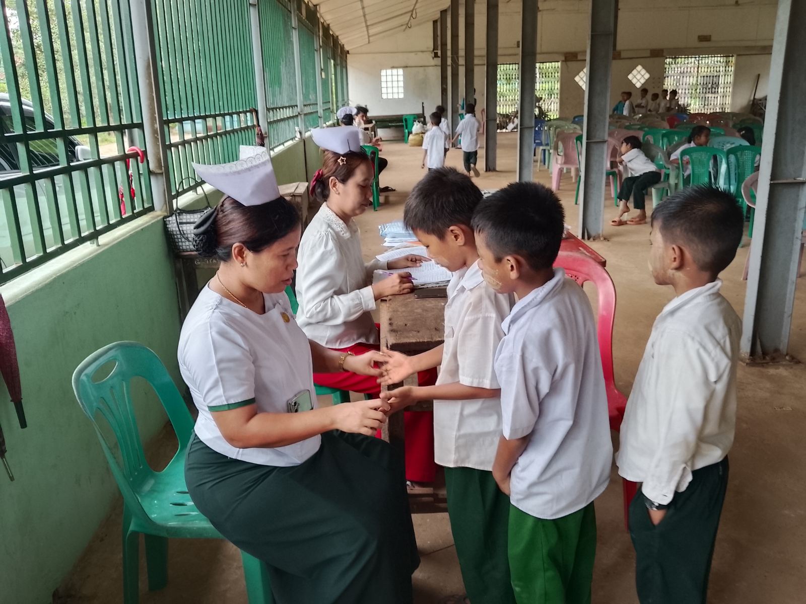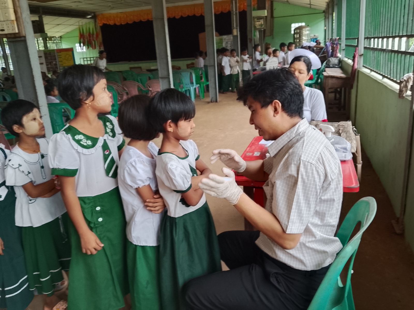 ထို့နောက် မြို့နယ်ဆရာဝန်ကြီးဒေါက်တာဆွေဇင်ဝင်း၊ သွားနှင့်ခံတွင်းဆရာဝန် ဒေါက်တာဇော်ရဲထက်နှင့်ကျန်းမာရေးဝန်ထမ်းများ၊ မြို့နယ်ပညာရေးမှူး၊ ကျောင်းအုပ်ဆရာမကြီးနှင့် ဆရာ၊ ဆရာမများက အဟာရကျွေးမွေးခြင်းနှင့်အဟာရပြခန်းတို့အားကြည့်ရှု့အားပေးခဲ့ကြပြီး၊ ကျောင်းသား၊ ကျောင်းသူများအား ကျန်းမာရေးစောင့်ရှောက်မှုများကို ပြုလုပ်ပေးခဲ့ကြကြောင်းသိရသည်။