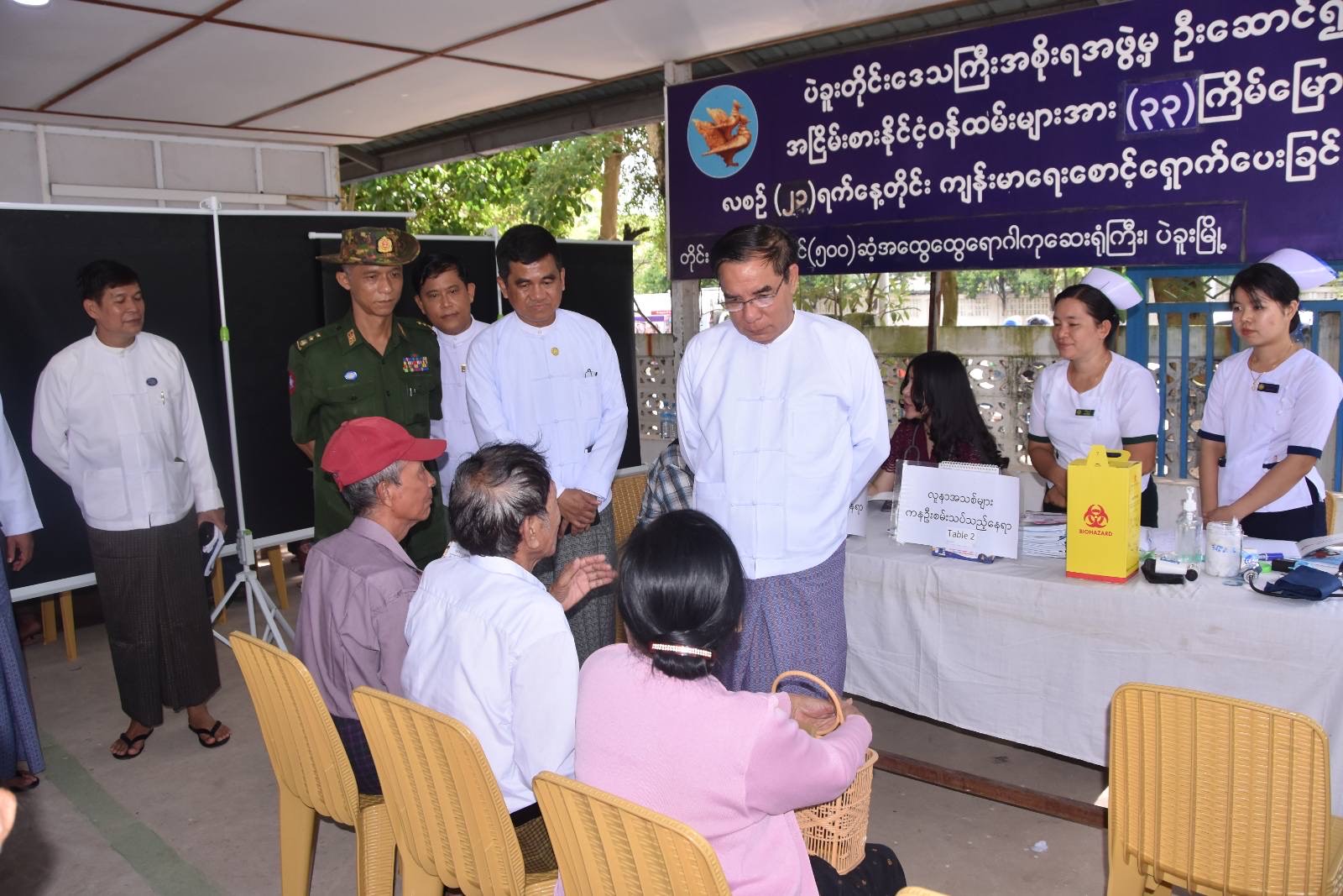 ရှေးဦးစွာ ပဲခူးတိုင်းဒေသကြီးဝန်ကြီးချုပ် ဦးမျိုးဆွေဝင်းနှင့် အစိုးရအဖွဲ့ဝင် ဝန်ကြီးများသည် ပဲခူးမြို့ ခုတင်(၅၀၀)ဆံ့ အထွေထွေရောဂါကုဆေးရုံကြီးတွင် ကျန်းမာရေးစောင့်ရှောက်မှု လာရောက်ခံယူနေကြသည့် အငြိမ်းစားနိုင်ငံ့ဝန်ထမ်းများအား ကျန်းမာရေးဝန်ထမ်းများက စမ်းသပ်စစ်ဆေးကုသပေးနေမှု၊ ဌာနဆိုင်ရာများ၊ မြို့မိမြို့ဖများ၊ လူမှုရေးအသင်းအဖွဲ့များနှင့် ပရဟိတအဖွဲ့အစည်းများမှ ပူးပေါင်းပါဝင်ကူညီဆောင်ရွက်ပေးနေမှုနှင့် ရေသန့်၊ ကော်ဖီနှင့် အာဟာရမုန့်များ အခမဲ့တိုက်ကျွေးနေမှုများအား လိုက်လံကြည့်ရှုခဲ့ပြီး ကျန်းမာရေးစောင့်ရှောက်မှု လာရောက်ခံယူကြသည့် အငြိမ်းစားနိုင်ငံ့ဝန်ထမ်းများအား ရင်းရင်းနှီးနှီး လိုက်လံနှုတ်ဆက် အားပေးစကားပြောကြားပြီး လစဉ်အငြိမ်းစားနိုင်ငံ့ဝန်ထမ်းများအား စဉ်ဆက်မပြတ် ကျန်းမာရေးစောင့်ရှောက်မှုပေးနိုင်ရေးနှင့် ဆေးဝါးလိုအပ်ချက်မရှိစေရေး ဖြည့်ဆည်းဆောင်ရွက်ပေးခဲ့သည်။