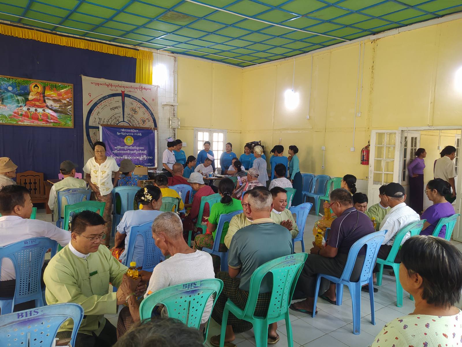 ထိုသို့ အငြိမ်းစားနိုင်ငံ့ဝန်ထမ်းများအား ကျန်းမာရေးစောင့်ရှောက်မှုနှင့် အာဟာရဒါနပြုခြင်းများ ဆောင်ရွက်ရာတွင် မြို့နယ်စီမံခန့်ခွဲရေးနှင့် အုပ်ချုပ်ရေးကော်မတီဥက္ကဋ္ဌ ဦးယဉ်ထွေးနှင့် ဌာနဆိုင်ရာများ၊ မြို့နယ်အမျိုးသမီးရေးရာအဖွဲ့ဥက္ကဋ္ဌ ဒေါ်လှလှရွှေနှင့် အဖွဲ့ဝင်များ၊ မိခင်နှင့်ကလေးစောင့်ရှောက်ရေးအသင်းဝင်းများ၊ ကျန်းမာရေးဝန်ထမ်းများက အာဟာရဒါနအဖြစ် အငြိမ်းစားဝန်ထမ်းတစ်ဦးလျှင် ဆီ ၅၀ ကျပ်သား၊ ကြက်ဥ ၅ လုံးနှင့် အားဖြည့်အချိုရည်နှင့် မုန့်များ ဝေငှပေးခဲ့ကြသည်။