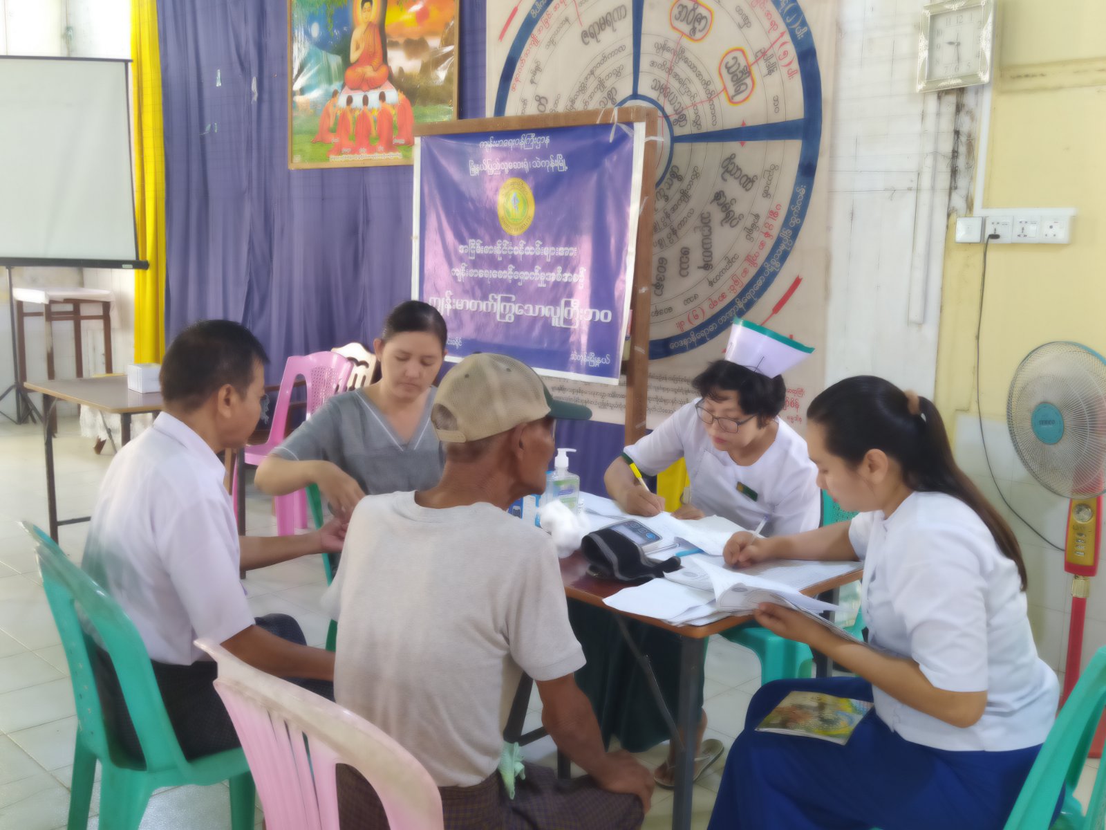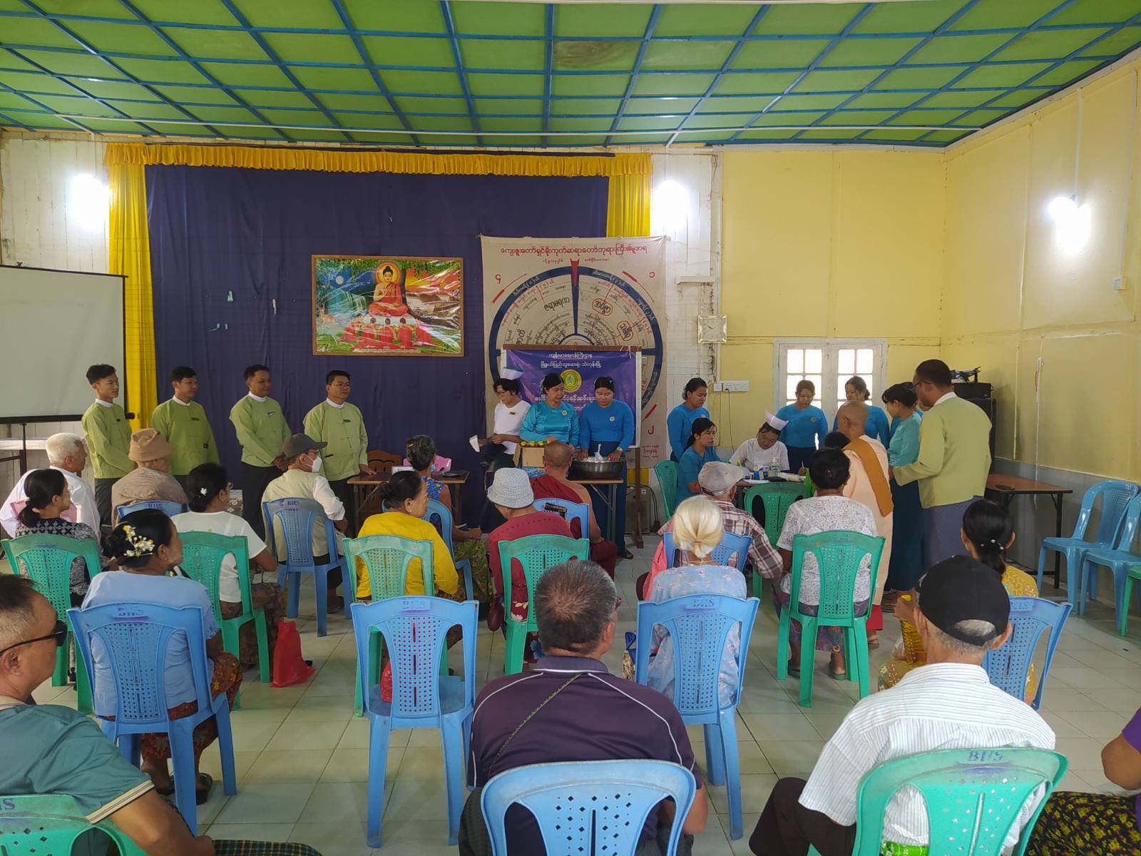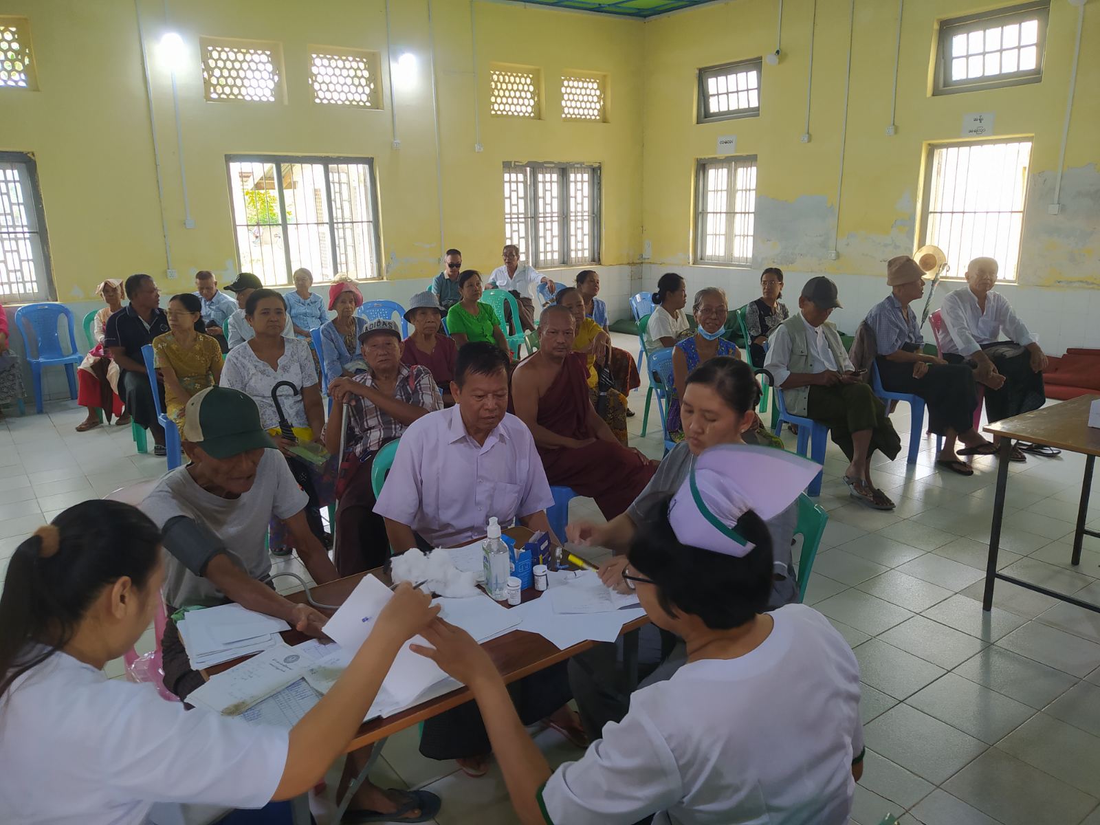 ထိုနောက် မြို့နယ်ဆရာဝန်ကြီးဒေါက်တာ ဦးစိုးမင်းထွေး ဦးဆောင်၍ ကျန်းမာရေးဝန်ထမ်းများက အငြိမ်းစားဝန်ထမ်းများအား ဆီးချိုသွေးချိုတိုင်းတာပေးခြင်း၊ သွေးပေါင်ချိန်ခြင်းနှင့် ဖြစ်ပွားနေသည့် ရောဂါများအလိုက် စမ်းသပ်စစ်ဆေးပေးပြီး လိုအပ်သောဆေးဝါးနှင့် ကုသခြင်းများကို (အခမဲ့) စစ်ဆေးဆောင်ရွက်ကုသပေးခဲ့သည်။
