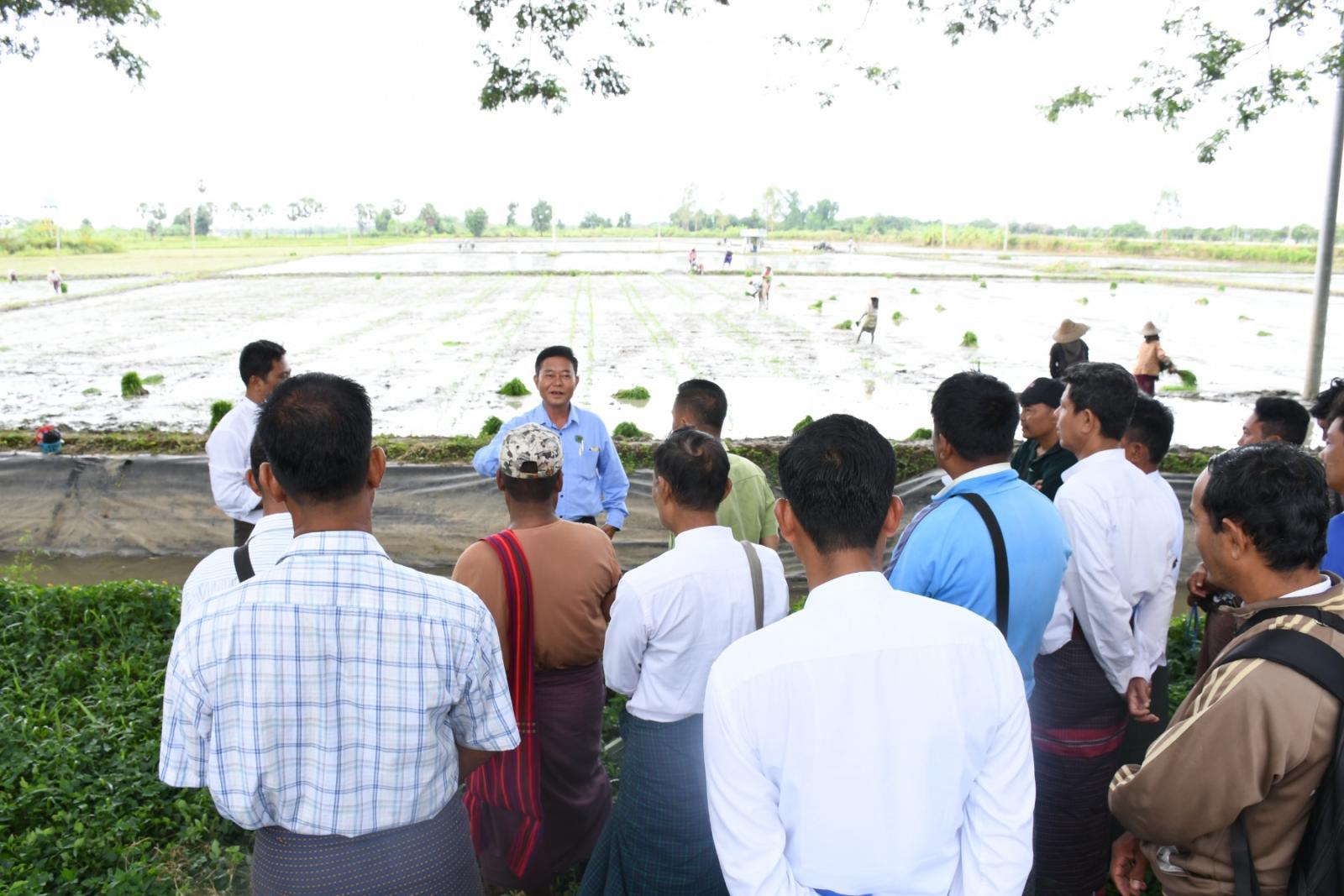 နေပြည်တော်ကောင်စီဝင် ဦးမင်းဦးသည် ယနေ့နံနက်ပိုင်းတွင် နေပြည်တော် ပုဗ္ဗသီရိမြို့နယ်၊ သပြေတန်းကျေးရွာအုပ်စု၊ ကွင်းအမှတ် ၁၆၄၂ ရှိ တောင်သူ ဒေါ်ယုယုလွင်၏ စိုက်ဧကတွင် အတန်းလိုက်စနစ်ဖြင့် ကောက်စိုက်သမားများမှ ပေါ်ဆန်းမွေးစပါး စိုက်ပျိုးနေမှုအား ကြည့်ရှုအားပေးသည်။