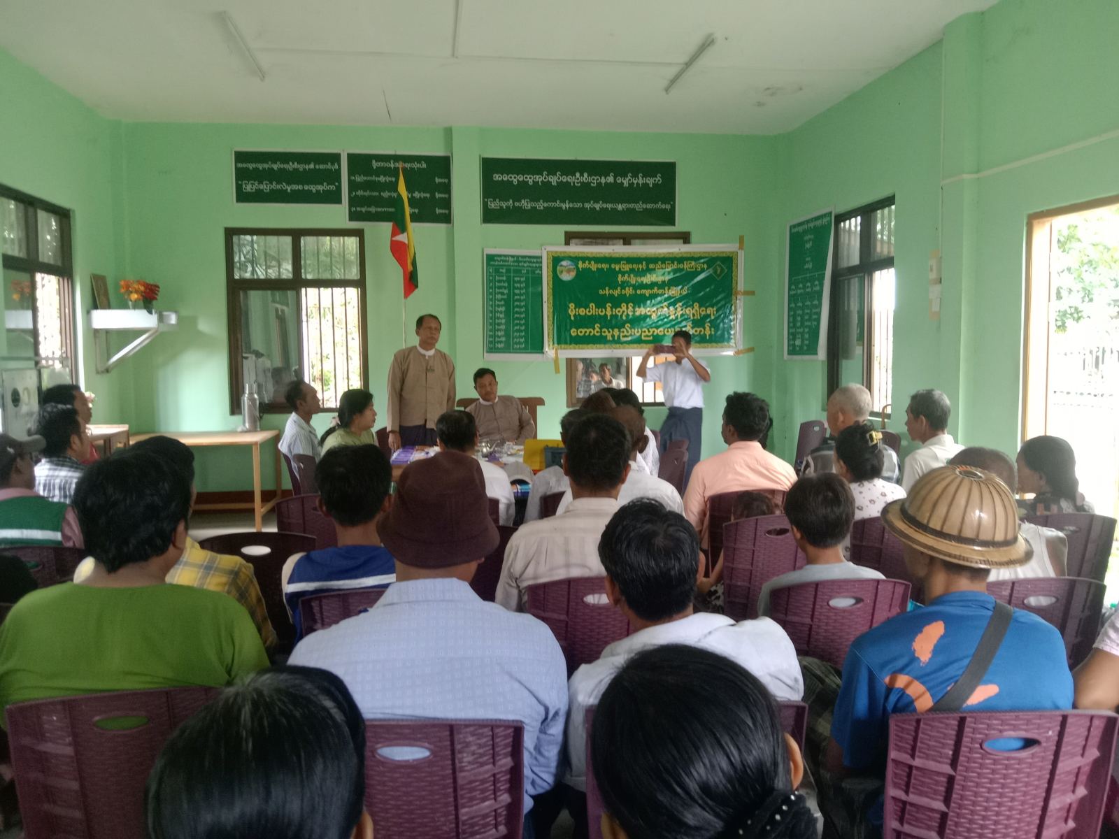 အဆိုပါအခမ်းအနားတွင် ခရိုင်စိုက်ပျိုးရေးဦးစီးဌာန၊ လက်ထောက်ညွှန်ကြားရေးမှူးဦးအောင်ကျော်နိုင်က အဖွင့်အမှာစကားပြောကြားကာ စပါးပန်းတိုင်အထွက်တိုးနှုန်းရရှိရေးအတွက် တောင်သူများအား အသိပညာပေးရှင်းလင်းပြောကြားခဲ့ပြီး မြို့နယ်စိုက်ပျိုးရေးဦးစီးမှူး ဦးမျိုးသန်းက မိုးစပါးအထွက်တိုးနှုန်းတိုးတက်စေရေးအတွက် ဓာတ်မြေသြဇာရောစပ်အသုံးပြုနည်းများကို ရှင်းလင်းပြောကြားခဲ့သည်။