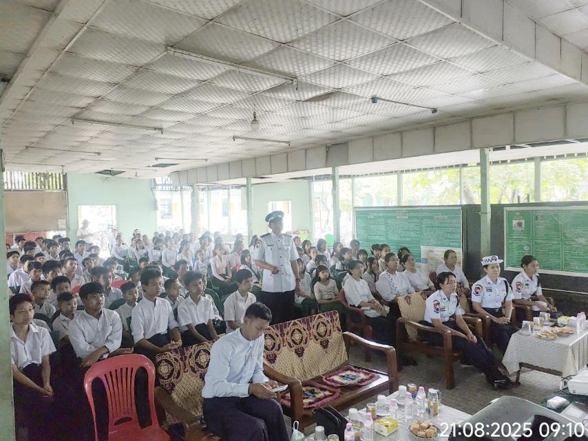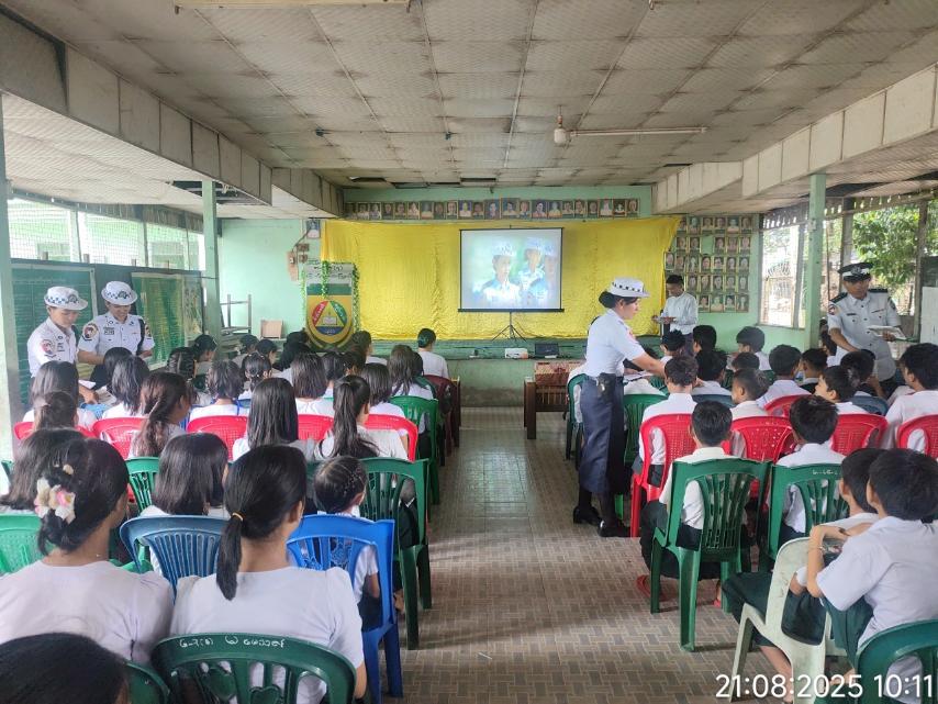ရန်ကုန်တိုင်းဒေသကြီး၊ မရမ်းကုန်းခရိုင်၊ မြောက်ဥက္ကလာပမြို့နယ်တွင် အမှတ်(၃၅)ယာဥ်ထိန်းတပ်ဖွဲ့စုမှ ကျောင်းသား၊ ကျောင်းသူများ ယာဉ်အန္တရာယ်ကင်းဝေးစေရေး ယာဉ်စည်းကမ်း၊ လမ်းစည်းကမ်း အသိပညာပေးဟောပြောခြင်းကို ယမန်နေ့နံနက် ၉ နာရီအချိန်က အမှတ်(၇)အခြေခံပညာာအလယ်တန်းကျောင်း မြတ်သဇင်ခန်းမတွင် ပြုလုပ်ခဲ့သည်။