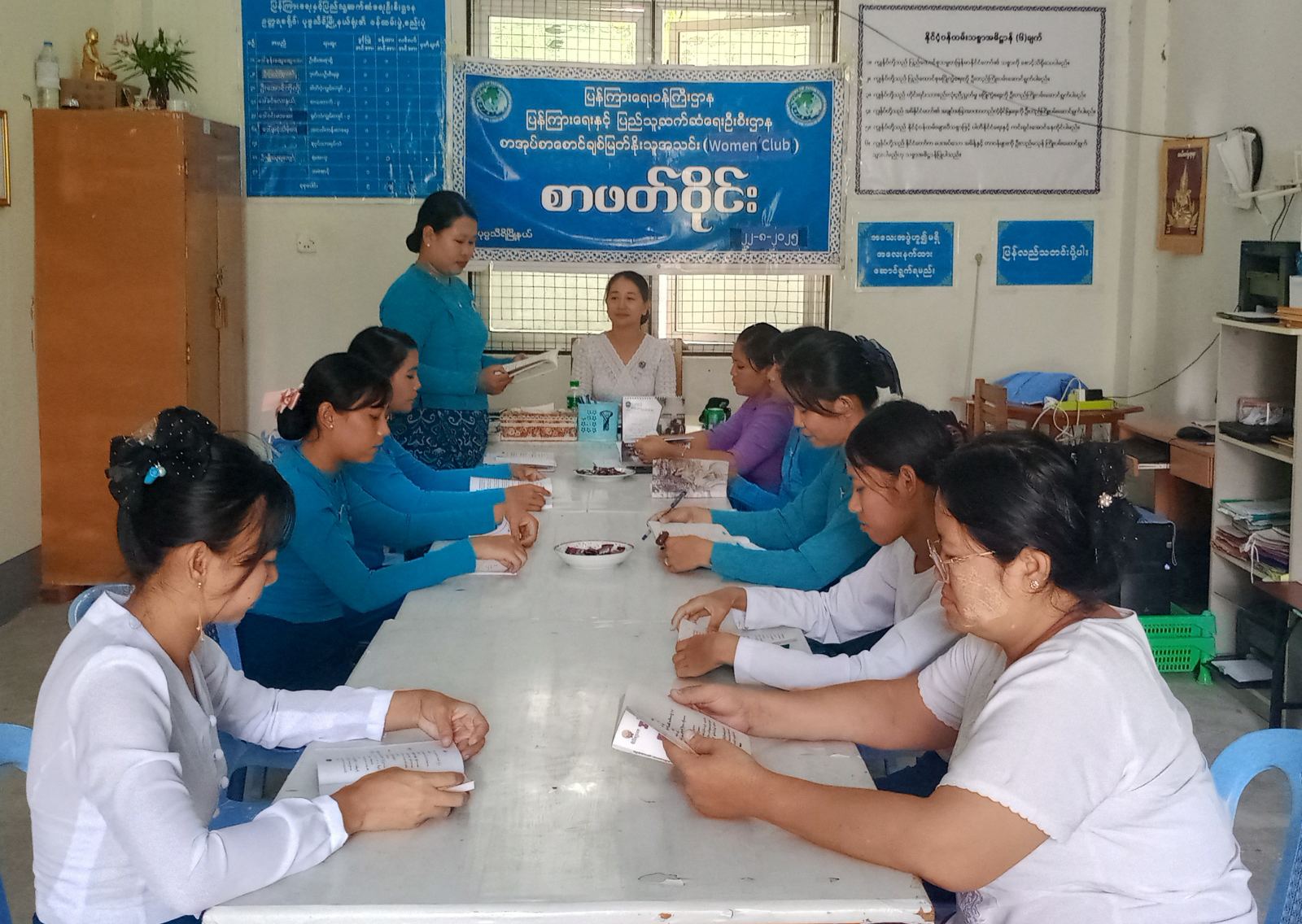 စာဖတ်ဝိုင်းဆွေးနွေးပွဲတွင် ပြန်ကြားရေးနှင့်ပြည်သူ့ဆက်ဆံရေးဦးစီးဌာန ပုဗ္ဗသီရိမြို့နယ်ရုံးမှ မြို့နယ်ဦးစီးမှူး ဒေါ်နန်းဆွေဆွေအေးက စာဖတ်ဝိုင်းကျင်းပပြုလုပ်ရခြင်းသည် စာဖတ်သည့် အလေ့အကျင့်ကောင်းများရရှိစေရန်နှင့် စာဖတ်သူအချင်းချင်း အသိပညာများဖလှယ်နိုင်စေရန် ရည်ရွယ်၍ ပြုလုပ်ရခြင်းဖြစ်ကြောင်း ရှင်းလင်းပြောကြားခဲ့ပြီးနောက် စာဖတ်ဝိုင်းကို ဆက်လက်ပြုလုပ်ရာ စာပေချစ်မြတ်နိုးသူအမျိုးသမီးအသင်း (Women Club) အသင်း အဖွဲ့ဝင်များဖြစ်ကြသည့် ဒေါ်ထက်မျက်လွင်၊ ဒေါ်မေမြတ်ဦးခင်၊ ဒေါ်နီနီလွင်၊ ဒေါ်သက်မှူးခိုင်တို့က စာရေးဆရာ လူခါး၊ ကိုစိုးထိုက်(ဖဒို)၊ ဟမ်စိုင်း(ဆေး-မန်း)၊ ချမ်းငြိမ်း(ဟံသာဝတီ)၊ ပီတိ(ပေကြီး)၊ စိမ့်စမ်းဖြူ(ဆေးတက္ကသိုလ်)၊ ဟေမာလွင်စသည့် စာရေးဆရာများရေးသားသော “လူငယ်နှင့်အောင်မြင်မှုပန်းတိုင်ဆီသို့” အောင်မြင်သောလူငယ်တစ်ယောက်ဖြစ်ဖို့ ပျော်ရွှင်ခြင်းဆီသို့ စာအုပ်ဖြင့် စာအုပ်တွင်ပါရှိသော ခေါင်းစဉ်များအနက်မှ မိမိတို့ကြိုက်နှစ်သက်ရာ ခေါင်းစဉ်တစ်ခုချင်းအလိုက် ဖတ်ကြားဆွေးနွေးကြပြီး ပြန်ကြားရေးနှင့်ပြည်သူ့ဆက်ဆံရေးဦးစီးဌာနမှ ခင်းကျင်းပြသထားသော စာအုပ်ပြပွဲအား ကြည့်ရှုလေ့လာခဲ့ကြောင်း သိရသည်။