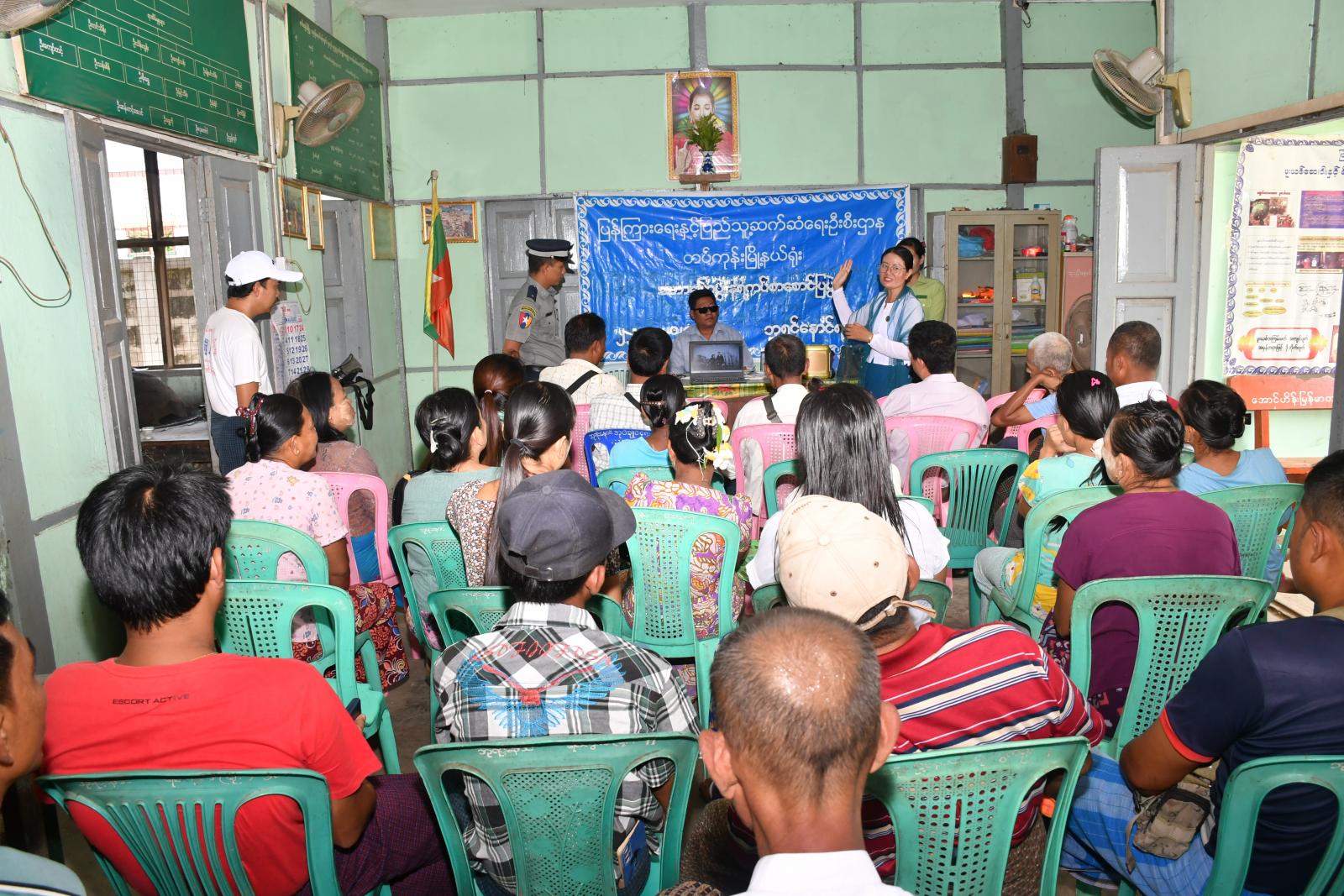 ဦးစွာ တရုတ်နိုင်ငံ၊ ပြည်သူ့လုံခြုံရေးဆိုင်ရာဝန်ကြီးဌာနနှင့် ကမ္ဘောဒီးယားနိုင်ငံ၊ ပြည်ထဲရေးဝန်ကြီးဌာနတို့မှ ဆက်သွယ်ရေးလိမ်လည်မှု တိုက်ဖျက်ရေးဆိုင်ရာ ဗီဒီယိုကလစ်(Vidoe Clit)ပြသခဲ့ပြီးနောက် မြို့နယ်အထွေထွေအုပ်ချုပ်ရေးဦးစီးဌာနမှ ဒုတိယဦးစီးမှူး ဒေါ်မြသန္တာလွင်၊ မြို့နယ်ပြန်ကြားရေးနှင့်ပြည်သူ့ဆက်ဆံရေးဦးစီးဌာနမှ ဦးစီးအရာရှိ ဒေါ်တင့်တင့်ခိုင်၊ မြို့နယ် ရဲတပ်ဖွဲ့မှူးရုံးမှ ဒုရဲအုပ် မင်းမင်းလှိုင်တို့က ဆက်သွယ်ရေးလိမ်လည်မှုတိုက်ဖျက်ရေးဆိုင်ရာများ ရှင်းလင်းဟောပြောခဲ့ကြောင်း၊ ကျန်ရပ်ကွက်၊ ကျေးရွာများနှင့် အခြေခံပညာကျောင်းများတွင် ဆက်လက်၍ အသိပညာပေးဟောပြောမည်ဖြစ်ကြောင်း၊ ဟောပြောပွဲအပြီးတွင် မြို့နယ်ပြန်ကြားရေးနှင့်ပြည်သူ့ဆက်ဆံရေးဦးစီးဌာနမှ ခင်းကျင်းပြသထားသည့် သုတ ရသ စာအုပ်များနှင့် အသိပညာပေး နံရံကပ်စာစောင်များအား ကျောင်းသား၊ ကျောင်းသူများ လေ့လာကြည့်ရှုကြောင်း သိရသည်။