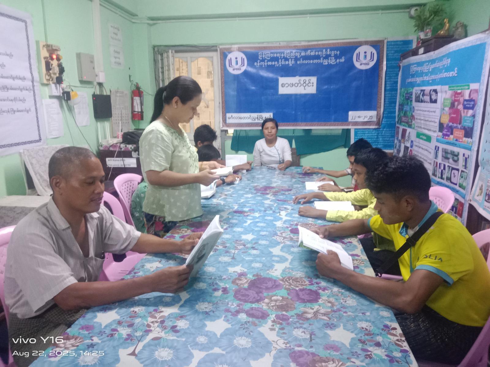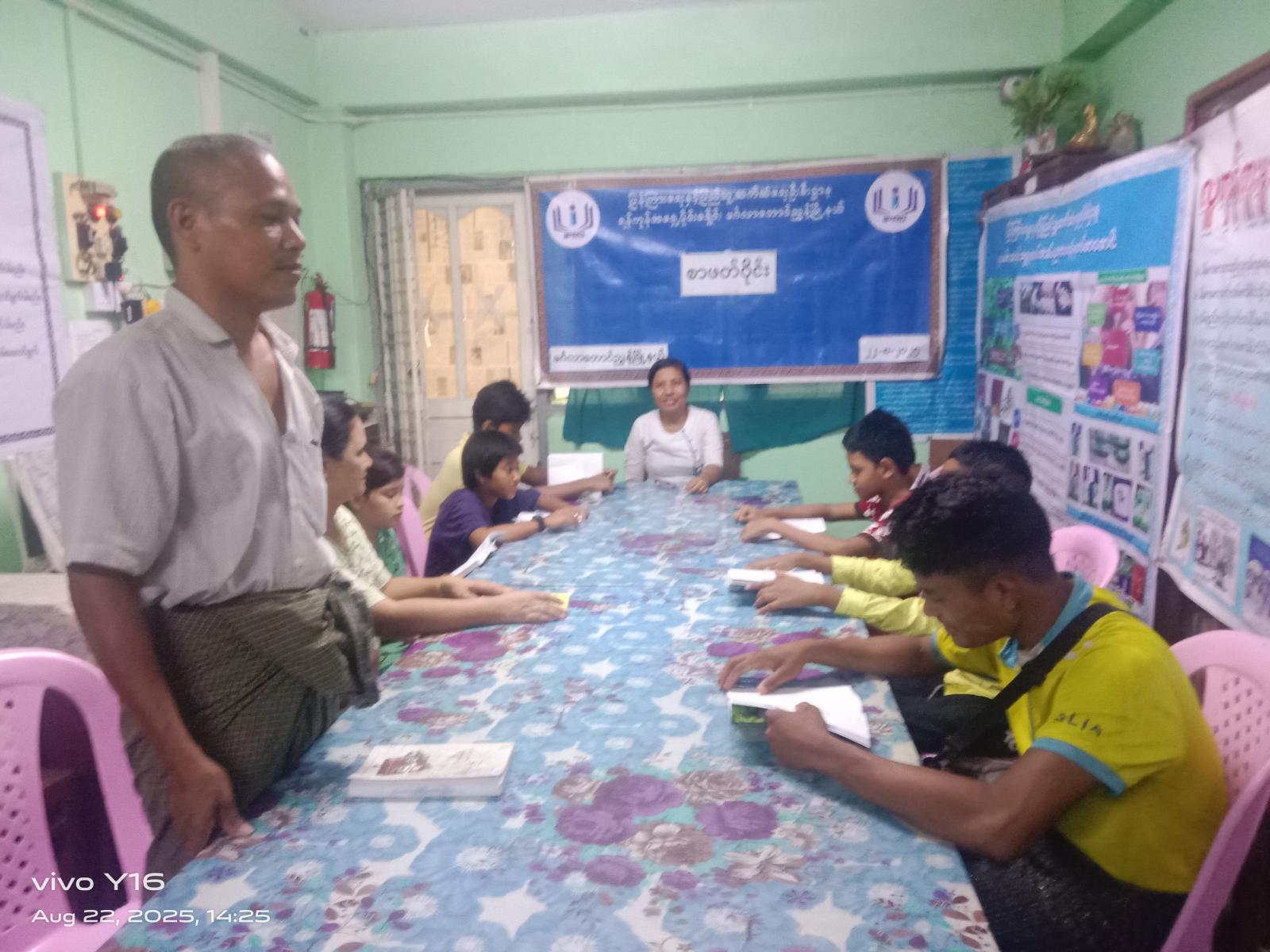 ရန်ကုန်တိုင်းဒေသကြီး၊ ဗိုလ်တထောင်ခရိုင်၊ မင်္ဂလာတောင်ညွန့်မြို့နယ်၊ ပြန်ကြားရေးနှင့်ပြည်သူ့ဆက်ဆံရေးဦးစီးဌာန၊ လူထုအခြေပြုဗဟိုဌာန (Community Centre) ၌ (Book Club) အဖွဲ့ဖြင့် စာရေးဆရာချစ်နိုင်(စိတ်ပညာ) ရေးသားသည့် “ လူငယ်နှင့် အောင်မြင်မှု” စာအုပ်ဖြင့် စာဖတ်ဝိုင်းကို ယမန်နေ့ နေလယ် (၂) နာရီအချိန်က ကျင်းပပြုလုပ်ခဲ့သည်။