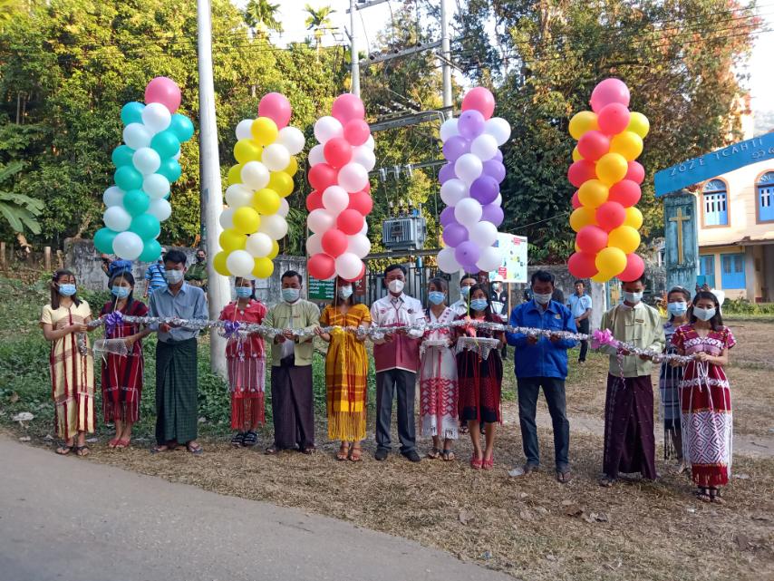 ဖွင့်ပွဲအခမ်းအနားတွင် ဘုန်းတော်ကြီး ( Fr ) စောသိမ်းမောင်က ဆုတောင်း ကောင်းချီးပေးပြီး ပြည်နယ်လွှတ်တော်ကိုယ်စားလှယ် စောဂျေအေ၀င်းမြင့်၊ လိပ်သိုမြို့ အုပ်ချုပ်ရေးမှူး ဦးစောမြတ်ကျော် ၊ မြို့လျှပ်စစ်မှူး ဦးချစ်ကိုကို ၊ သံတောင်ကြီးမြို့နယ် ကျေးလက်ဒေသ ဖွံ့ဖြိုးတိုးတက်ရေးဦးစီးဌာန မြို့နယ်ဦးစီးမှူး ဦးချမ်းငြိမ်းအောင်နှင့် ခ.လ.ရ (၅) မှ ဗိုလ်မှူးအောင်ထွေး တို့က ဖဲကြိုးဖြတ် ဖွင့်လှစ်ပေးကြသည်။