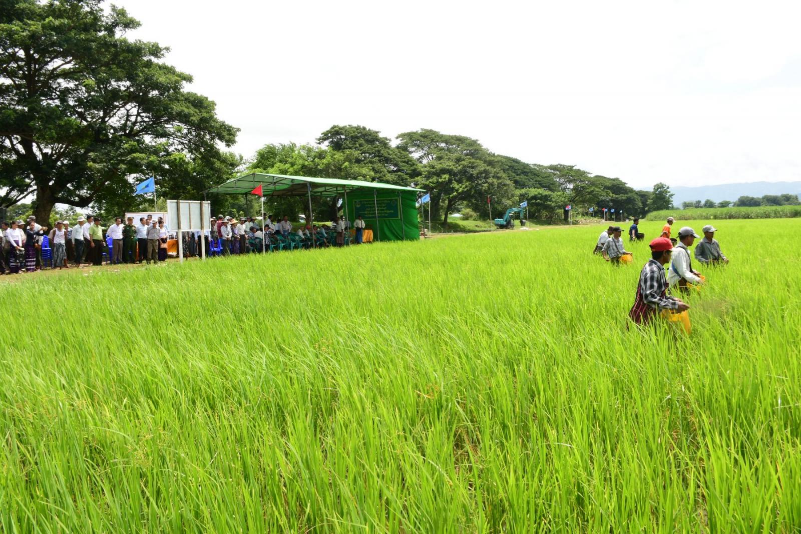ထို့နောက် စိုက်ပျိုးရေးဦးစီးဌာနနှင့် ဆည်မြောင်းဦးစီးဌာနတို့မှ တာဝန်ရှိသူများက သွင်းအားစုများ သုံးစွဲပုံနှင့် သဘာဝမြေဩဇာပြုလုပ်နည်းများ၊ ရေသွင်း၊ ရေထုတ်မြောင်းများ ဆောင်ရွက်ထားရှိမှု အခြေအနေများကို ရှင်းလင်းတင်ပြကြသည်။