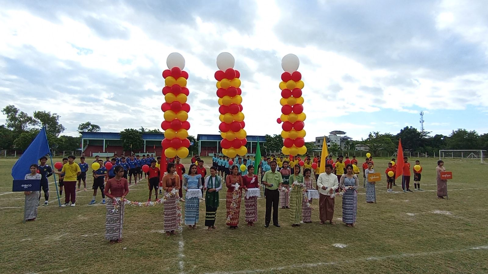 ရှေးဦးစွာ ဘောလုံးပြိုင်ပွဲအဖွင့်ပွဲအခမ်းအနားကို ကျောင်းသား၊ ကျောင်းသူအားကစားသမားများနှင့် အခမ်းအနားတက်ရောက်လာကြသူများက နိုင်ငံတော်အလံ အလေးပြုကြပြီး အားကစားသမားများက သစ္စာအဓိဋ္ဌာန်ရွတ်ဆို၍ ဖဲကြိုးဖြတ်ဖွင့်လှစ်ကာ မြို့နယ်စီမံခန့်ခွဲရေးနှင့် အုပ်ချုပ်ရေးကော်မတီဥက္ကဋ္ဌ ဦးမင်းအောင်က အဖွင့်အမှာစကား ပြောကြားပြီး မြို့နယ်ပညာရေးမှူးရုံးမှ ပညာရေးမှူး ဒေါ်စံပယ်ဝင်းက အားကစားသမားလူငယ်လူရွယ်များ ပေါ်ထွန်းလာစေရေးရန် ရည်ရွယ်၍ ဘောလုံးပြိုင်ပွဲကျင်းပ ဆောင်ရွက်ခဲ့ကြောင်းပြောကြားခဲ့သည်။