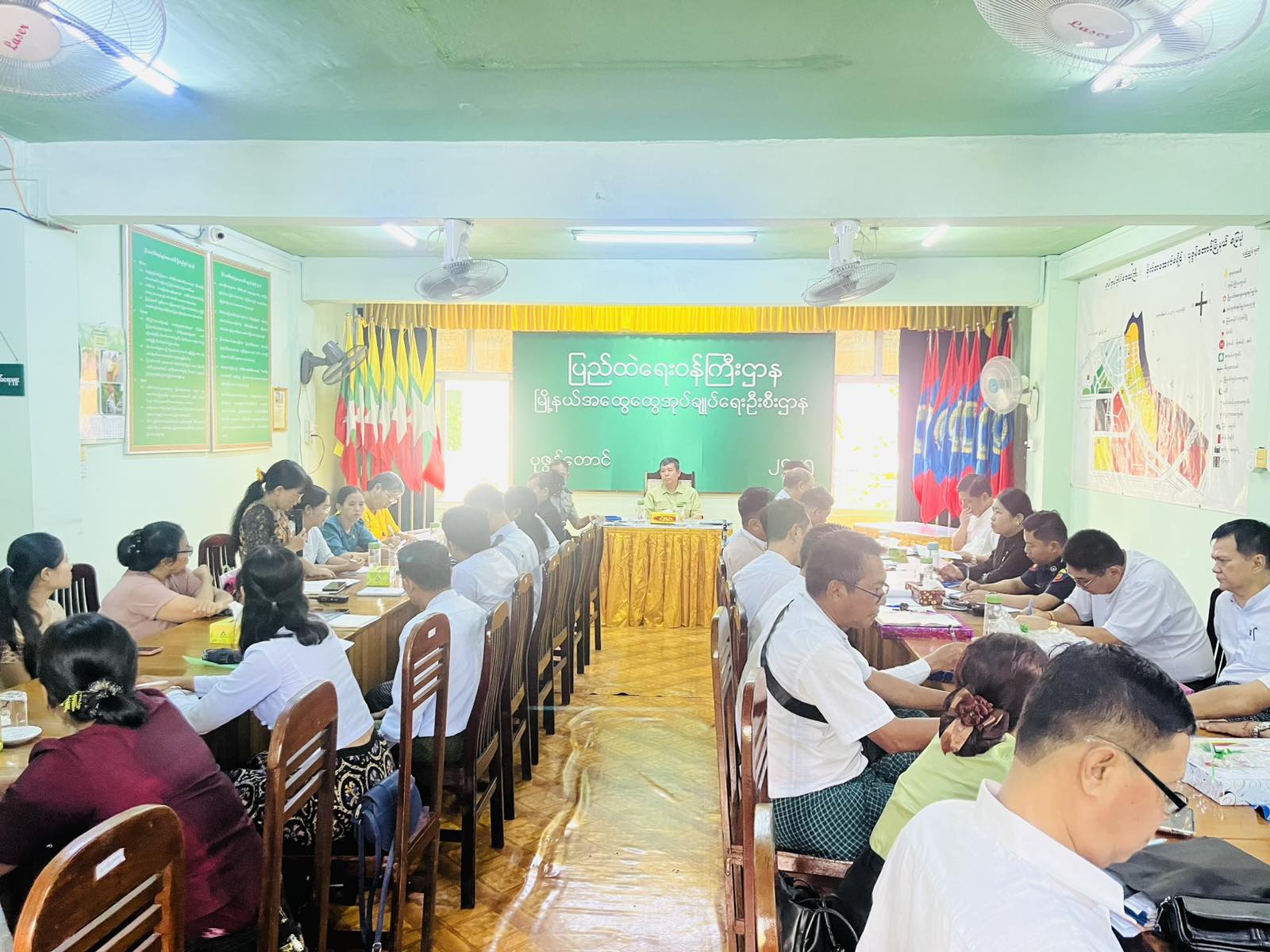 ရန်ကုန်တိုင်းဒေသကြီး၊ ဗိုလ်တထောင်ခရိုင်၊ ပုဇွန်တောင်မြို့နယ်အတွင်း ဒေသဖွံ့ဖြိုးတိုးတက်စေရေးအတွက် မြို့နယ်စီမံခန့်ခွဲရေးနှင့် အုပ်ချုပ်ရေးကော်မတီနှင့် မြို့နယ်အဆင့်ဌာနဆိုင်ရာများ၊ ရပ်ကွက်အုပ်ချုပ်ရေးမှူးများ လုပ်ငန်းညှိနှိုင်းအစည်းအဝေးကို ယနေ့နံနက် ၁၀ နာရီအချိန်က မြို့နယ်အထွေထွေအုပ်ချုပ်ရေးဦးစီးဌာနရုံး အစည်းအဝေးခန်းမ၌ ကျင်းပပြုလုပ်ခဲ့သည်။
