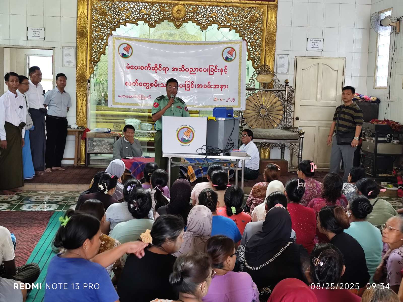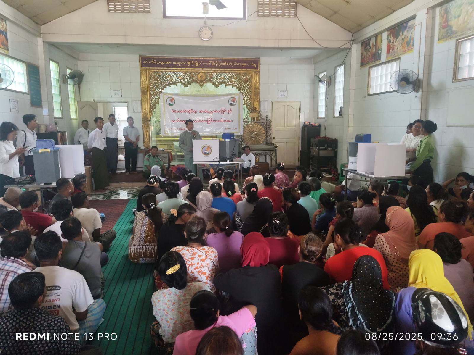 မန္တလေးတိုင်းဒေသကြီး မဟာအောင်မြေမြို့နယ်၌ မြန်မာအီလက်ထရောနစ်မဲပေးစက်ဆိုင်ရာ အသိပညာပေးခြင်းနှင့် လက်တွေ့စမ်းသပ်မဲပေးခြင်းအခမ်းအနားကို ဩဂုတ် ၂၅ ရက်က စင်္ကြာနွယ်စဉ်ရပ်ကွက် လက်ပန်တန်းဓမ္မာရုံ၌ ကျင်းပသည်။