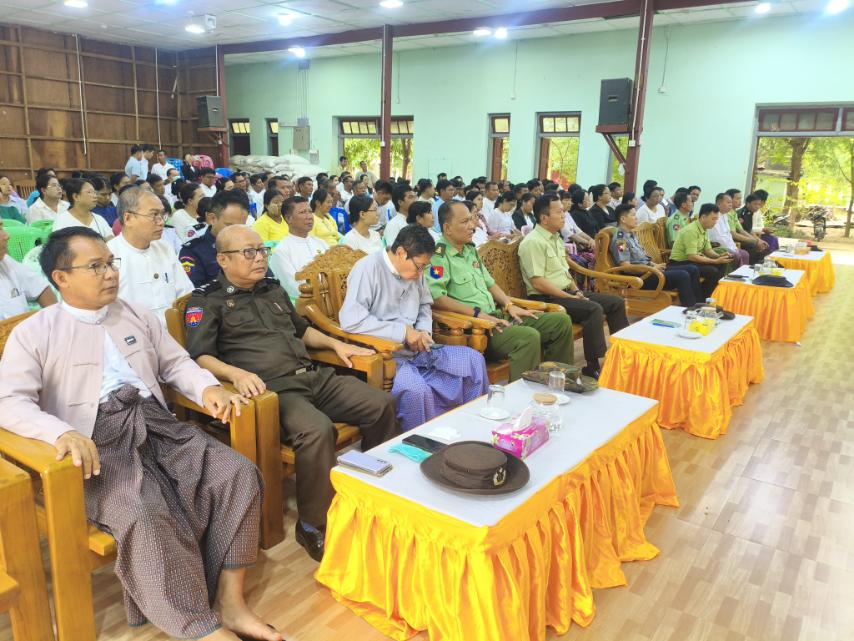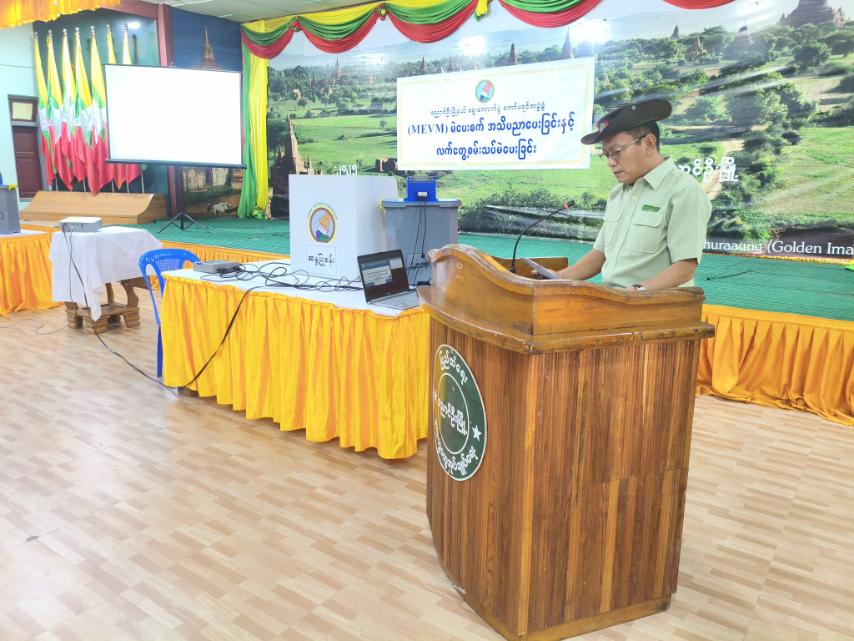 အခမ်းအနားတွင် ခရိုင်စီမံခန့်ခွဲရေးနှင့်အုပ်ချုပ်ရေးအုပ်ချုပ်ရေးကော်မတီ ဥက္ကဋ္ဌ ဦးကျော်မင်းညိုက အမှာစကားပြောကြားပြီး ယခင်ရွေးကောက်ပွဲများတွင် အသုံးပြုခဲ့သော နိုင်သူအကုန်ယူစနစ်(FPTP)အစား ယခုရွေးကောက်ပွဲတွင် နိုင်သူအကုန်ယူစနစ်(FPTP)နှင့် အချိုးကျ ကိုယ်စားပြု စနစ်(PR)စနစ်ကိုပေါင်းစပ်ရောနှောထားသောကိုယ်စားလှယ်အချိုးကျစနစ်(MMP) ကျင့်သုံးသွားမည်ဖြစ်ကြောင်း၊ မြန်မာအီလက်ထရောနစ်မဲပေးစက်(MEVM)ကိုမဲဆန္ဒရှင်များ မဲပေးရာတွင် ရှင်းလင်းလွယ်ကူစွာနဲ့မဲပေးနိုင်ရန် မြန်မာအီလက်ထရောနစ်မဲပေးစက်များကို အသုံးပြုနိုင်ရေး စမ်းသပ်မဲပေးကြရန်ပြောကြားသည်။ ထို့နောက် မြို့နယ်ရွေးကောက်ပွဲ ကော်မရှင်အဖွဲ့ခွဲမှ ဦးစီးအရာရှိဒေါ်ယွန်းယွန်းထိုက်က မဲပေးစက်နှင့်စပ်လျဉ်း၍ရှင်းလင်းတင်ပြသည်။