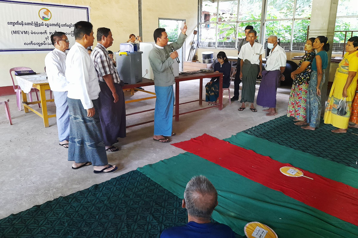 မန္တလေးတိုင်းဒေသကြီး ညောင်ဦးခရိုင် ကျောက်ပန်းတောင်းမြို့နယ် မြို့နယ်ရွေးကောက်ပွဲ ကော်မရှင်အဖွဲ့ခွဲမှ မြန်မာအီလက်ထရောနစ် (MEVM) မဲပေးစက်အကြောင်း အသိပညာပေးခြင်းနှင့် လက်တွေ့စမ်းသပ်မဲပေးမှု သရုပ်ပြခြင်းကို ဩဂုတ်၂၅ရက် ညနေ ၃ နာရီခွဲက စံပြရပ်ကွက်၊ အောင်ဇဗ္ဗူလမ်းရှိ မဟာဗောဓိဓမ္မာရုံတွင် ပြုလုပ်သည်။