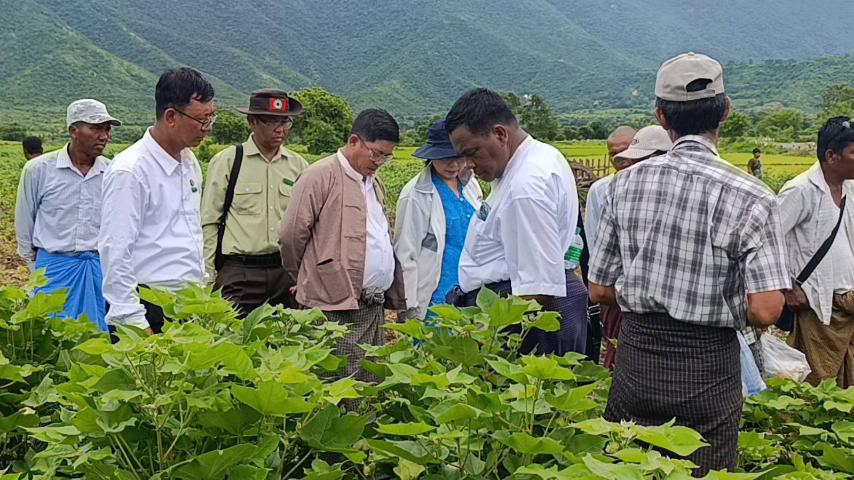 မန္တလေးတိုင်းဒေသကြီး ကျောက်ဆည်ခရိုင် မြစ်သားမြို့နယ် နွားကူးကြီးကျေးရွာအုပ်စု ကွင်းအမှတ် (၆၅၃) တောင်သူ ဦးသိန်းထွန်းကွင်းတွင် တောင်သူအခြေပြုလိုင်း-၆၆ ချည် မျှင်ရှည်ဝါမျိုးကောင်း၊ မျိုးသန့်မျိုးစေ့ထုတ် ပန်းတိုင်အထွက်နှုန်းရရှိရေးအတွက် စိုက်ပျိုး ရေးဦးစီးဌာနနှင့် စိုက်ပျိုးရေးသုတေသနဦးစီးဌာနတို့ ပူးပေါင်း၍ ယမန်နေ့နံနက် ၁၀နာရီ က ကွင်းသရုပ်ပြစိုက်ပျိုးသည်။