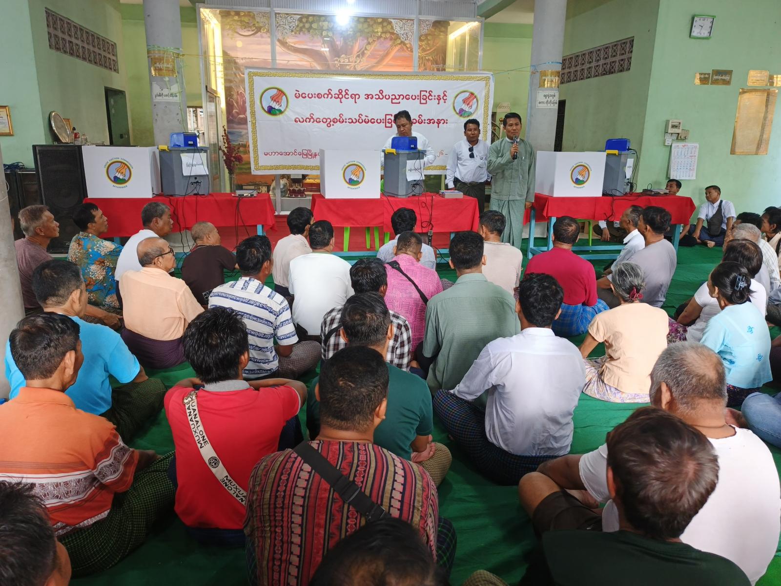 မန္တလေးတိုင်းဒေသကြီး၊ မဟာအောင်မြေခရိုင် မဟာအောင်မြေမြို့နယ်ရွေးကောက်ပွဲကော်မရှင် အဖွဲ့ခွဲအနေဖြင့် ဟေမမာလာတောင်ရပ်ကွက်အတွင်း သဗ္ဗသုခဓမ္မာရုံ၌ အများပြည်သူများကို မဲပေးစက်ဆိုင်ရာ အသိပညာပေးခြင်းနှင့် လက်တွေ့စမ်းသပ်မဲပေးခြင်းအခမ်းအနားကို ဩဂုတ်၂၆ရက်က ကျင်းပသည်။