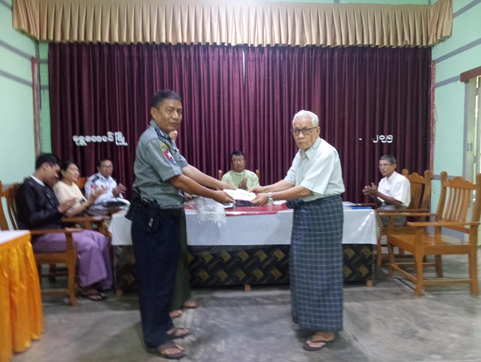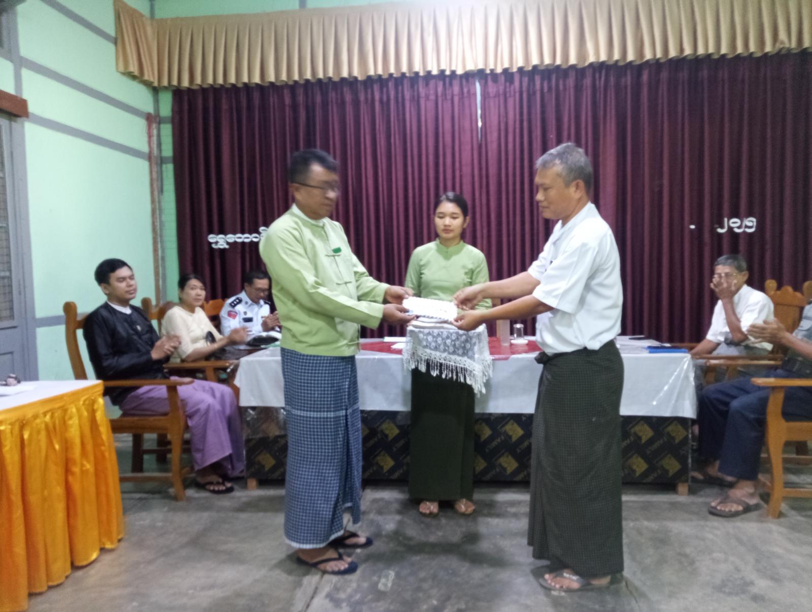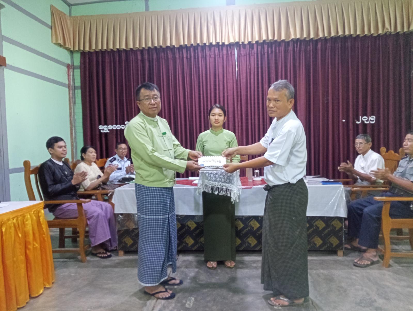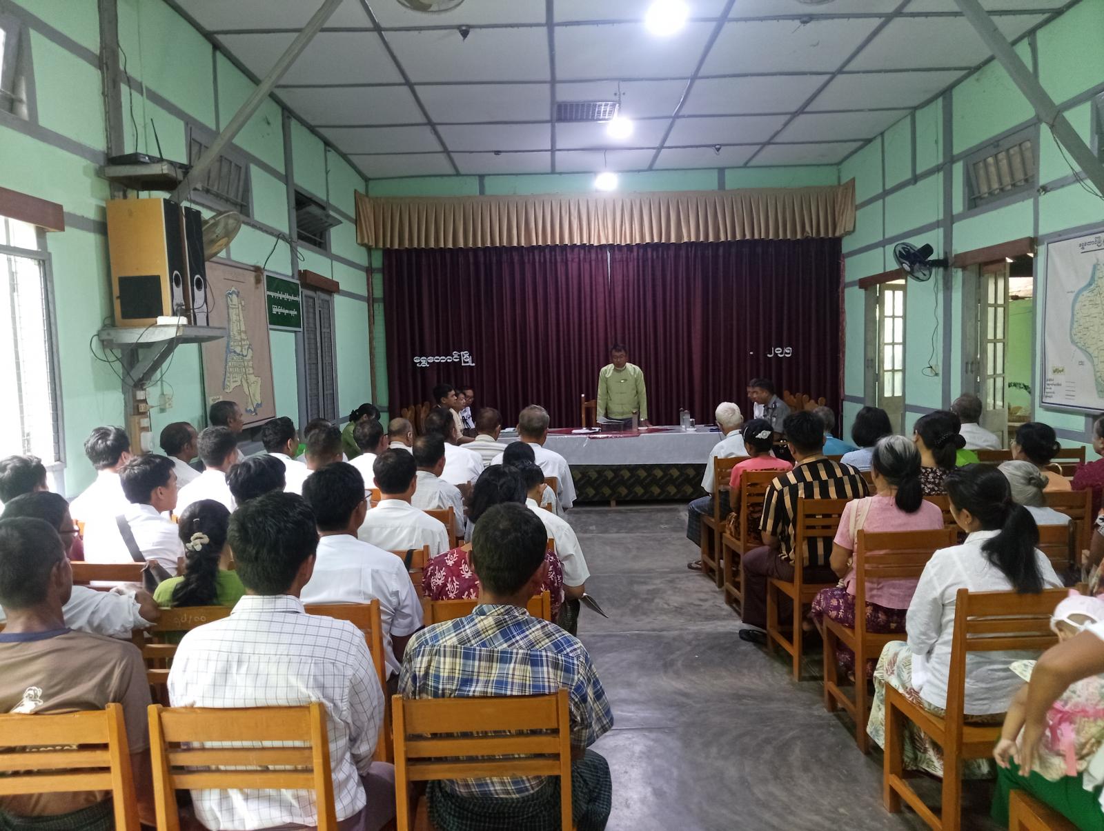 ပဲခူးတိုင်းဒေသကြီး၊ ပြည်ခရိုင်၊ ရွှေတောင်မြို့နယ်၊ အထွေထွေအုပ်ချုပ်ရေးဦးစီးဌာန၊ အစည်းအဝေးခန်းမတွင် ယမန်နေ့နံနက်ပိုင်းက ယာယီနေရပ်စွန့်ခွာပြည်သူများအတွက် ထောက်ပံ့ငွေပေးအပ်ခြင်းအခမ်းအနား ကျင်းပခဲ့သည်။