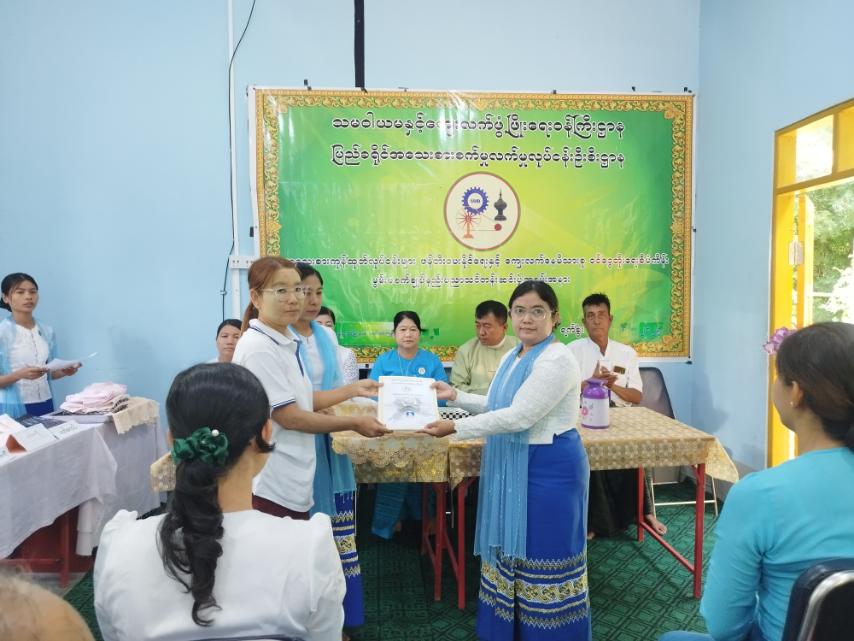 အဆိုပါသင်တန်းတွင် သင်တန်းသား (၁၅)ဦးအား အမျိုးသမီးဝတ်အင်္ကျီအမျိုးမျိုး၊ ဂါဝန်၊ သုံးလွှာစကပ်၊ လေးလွှာစကပ်နှင့် ချိတ်စကပ်ချုပ်နည်း စသည်တို့ကို ကိုယ်ပိုင်လုပ်ငန်းလုပ်ကိုင်နိုင်ရန် (၂၅-၆-၂၀၂၅)ရက်နေ့မှ (၂၄-၇-၂၀၂၅)နေ့အထိ (၁)လကြာ စာတွေ့လက်တွေ့သင်ကြားခဲ့ပြီး (၆-၈-၂၀၂၅)ရက်နေ့မှ (၂၀-၈-၂၀၂၅)ရက်နေ့အထိ မွမ်းမံသင်တန်းကို ဖွင့်လှစ်ပေးခဲ့သည်။ သင်တန်းမှ အမှန်တကယ် ကိုယ်ပိုင်လုပ်ငန်းထူထောင်မည့် ထူးချွန်သင်တန်းသူ(၅)ဦးအား သတ်မှတ်ချက်များနှင့်အညီ ရွေးချယ်ပြီး တစ်ဦးလျှင် ငွေကျပ်(၁၄)သိန်းဖိုးနှင့်ညီမျှသည့် ဒေသဖွံ့ဖြိုးရေးလုပ်ငန်းသုံးပစ္စည်းများ သုံးစွဲခွင့်ပြုသွားမည်ဖြစ်ကြောင်း သိရသည်။
