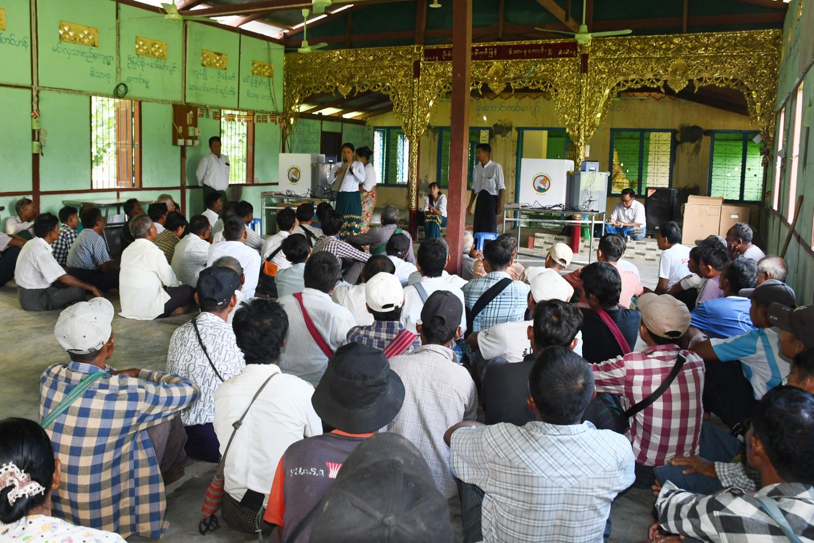 ရှေးဦးစွာ မြို့နယ်ရွေးကောက်ပွဲကော်မရှင်အဖွဲ့ခွဲရုံးမှ မြို့နယ်ရွေးကောက်ပွဲအရာရှိ ဒေါ်ခင်သီတာခိုင်က မြန်မာအီလက်ထရောနစ်မဲပေးစက် (MEVM) အကြောင်းနှင့် မဲပေးပုံအဆင့်ဆင့်တို့ကို ရှင်းလင်းဆွေးနွေးပြီး ရှင်းလင်းပွဲသို့ တက်ရောက်လာသည့် ပြည်သူများက မြန်မာအီလက်ထရောနစ်မဲပေးစက် (MEVM) ဖြင့် လက်တွေ့စမ်းသပ်မဲပေးခြင်းပြုလုပ်ကြပြီး မဲရလာဒ်အား လက်တွေ့သရုပ်ပြထုတ်ပြန်ကြေငြာခြင်းကို ပြသခဲ့ကြောင်း၊ အလားတူ ရှမ်းပွဲရပ်ကွက်ရှိ ရာပြည့်သာသနာ့ဗိမာန်တော်တွင်လည်း ကျင်းပပြုလုပ်ခဲ့ကြောင်း သိရသည်။
