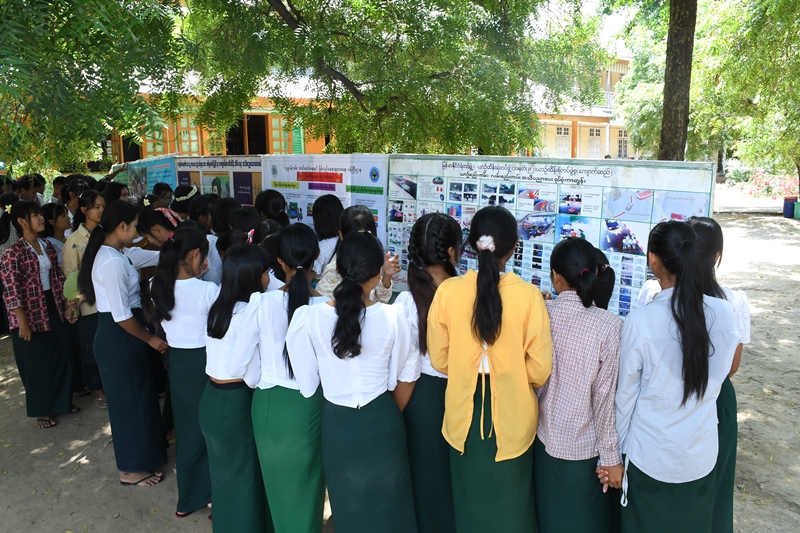 ထို့နောက် အခမ်းအနားသို့ တက်ရောက်လာသည့် ကျောင်းသား/ကျောင်းသူများမှ ယာဉ်စည်းကမ်းလမ်းစည်းကမ်း၊ သဘာဝဘေးအန္တရာယ်၊ ကလေးအလုပ်သမားပပျောက်ရေး၊ အရွယ်မရောက်သေးသည့်ကလေးငယ်များ စစ်မှုထမ်းခြင်းမှ ကာကွယ်တားဆီးထိန်းသိမ်းရေး အသိပညာပေး နံရံကပ်စာစောင်များအား ကြည့်ရှုလေ့လာကြသည်။