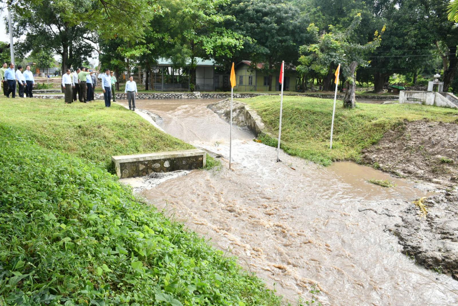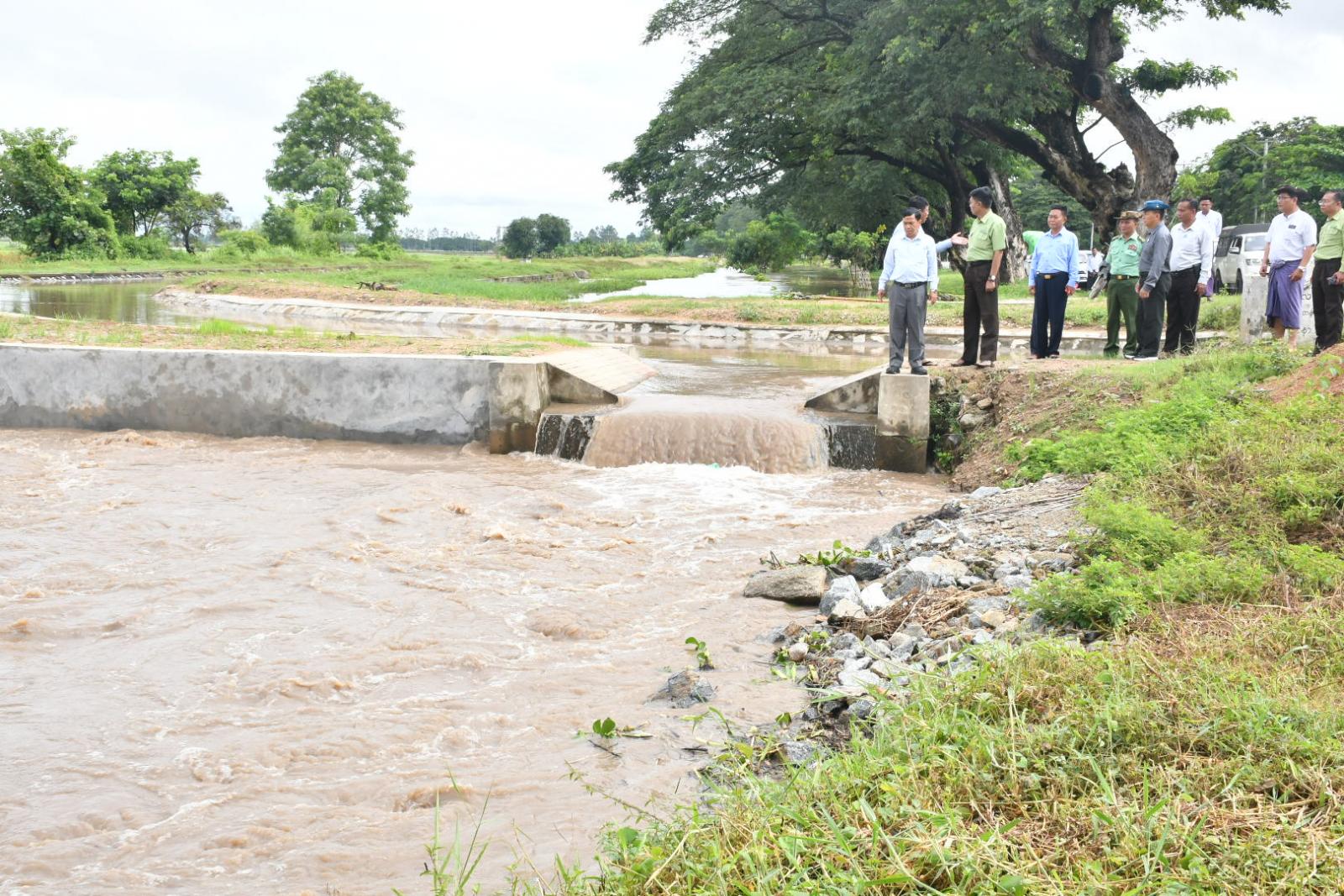 ဆက်လက်၍ ညနေပိုင်းတွင် နေပြည်တော်ကောင်စီဥက္ကဋ္ဌ ဦးသန်းထွန်းဦးသည် တာဝန်ရှိသူများနှင့်အတူ ဇေယျာသီရိမြို့နယ် ပင်လောင်းလမ်းဘေး နေပန်လပန်ကွင်းတွင် မိုးသည်းထန်စွာရွာသွန်းမှုကြောင့် ရေဝင်ရောက်နေမှုများ၊ လမ်းရေကျော်နေမှုများအား ရေများအမြန်ကျဆင်းစေရေးအတွက် မပိုက်ကယ်ရိုးမှ နရဘန်ချောင်းအတွင်းသို့ ၁၀ လက်မပိုက် ၅ လုံးဖြင့် ရေဖောက်ထုတ်ဆောင်ရွက်နေမှုအား သွားရောက်ကြည့်ရှုစစ်ဆေးပြီး တာဝန်ရှိသူများအား ပေါင်းလောင်းမြစ်အတွင်းသို့ ရေများအမြန်စီးဆင်းနိုင်ရေးအတွက် ပေါင်းလောင်းမြစ်အတွင်းသို့ဝင်ရောက်သည့် ကျွန်းရောင်း-အိုင်စောက်-ပေါင်းလောင်း ရေထုတ်မြောင်း၊ လူတေရိုး၊ မျက်လှည့်ရိုး၊ ငဖယ်အင်းရိုးများတစ်လျှောက် ရေစီးရေလာ ကောင်းမွန်စေရေးအတွက် ဒိုက်များ၊ အမှိုက်များ ရှင်းလင်းဆောင်ရွက်ရေးတို့ကို မှာကြားသည်။ ယင်းနောက် နေပြည်တော်ကောင်စီဥက္ကဋ္ဌ ဦးသန်းထွန်းဦးသည် ရန်ကုန်-မန္တလေးပြည်ထောင်စုလမ်းမကြီးဘေးဝဲယာ ရေစီးရေလာကောင်းမွန်စေရေး ဆောင်ရွက်နေမှုများအား လှည့်လည်ကြည့်ရှုစစ်ဆေးခဲ့ကြောင်း သိရသည်။