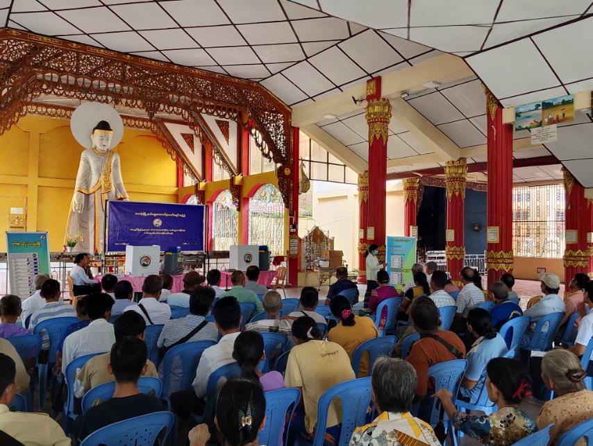 ရန်ကုန်တိုင်းဒေသကြီး၊ ကမာရွတ်ခရိုင်၊ ဗဟန်းမြို့နယ်ရှိ မဲဆန္ဒရှင်ပြည် သူများအား မြန်မာအီလက်ထရောနစ် မဲပေးစက် (MEVM)ဆိုင်ရာ အသိပညာပေးခြင်းနှင့် လက်တွေ့စမ်းသပ်မဲပေးခြင်းလုပ်ငန်းအား ယမန်နေ့နေ့လယ် ၁ နာရီအချိန်က အရှေ့ရွှေဂုံတိုင်ရပ်ကွက်ရှိ လူထုအခြေပြုဗဟိုဌာန(ဗဟန်း)နှင့် ဗိုလ်ချိုအမှတ် (၁)ရပ်ကွက်တို့တွင် ဆောင်ရွက်ခဲ့ကြောင်း သိရှိရသည်။