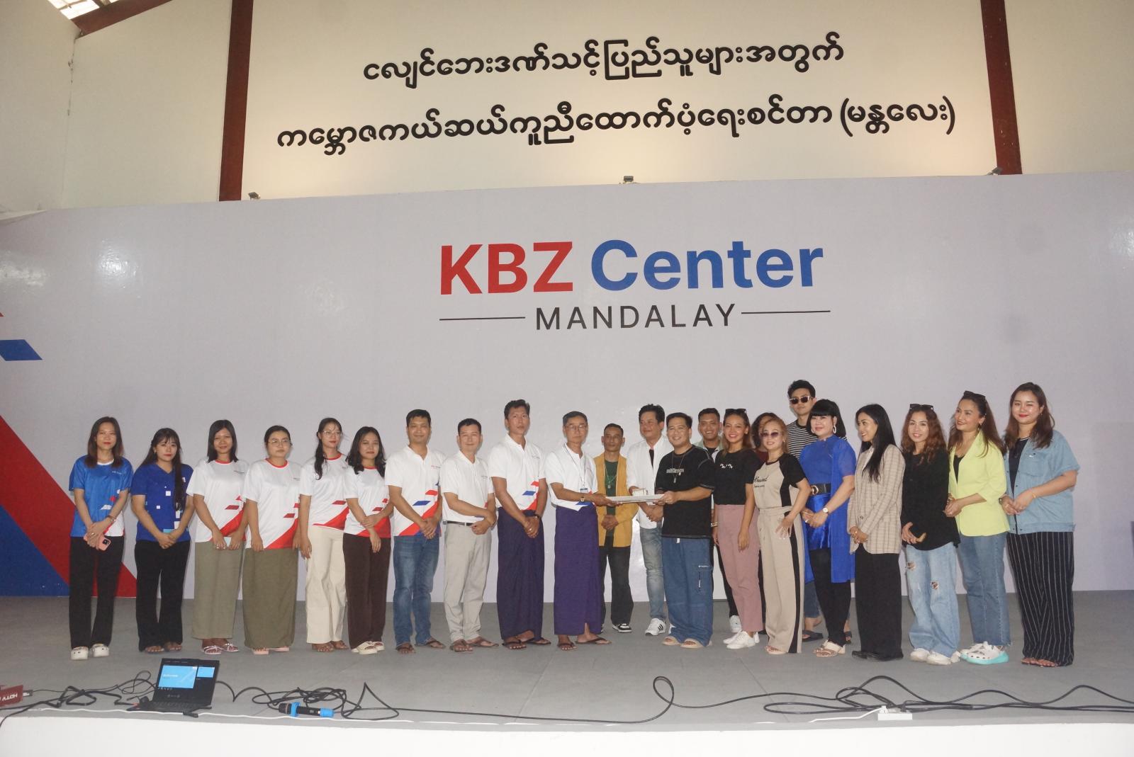 ဦးစွာ မြတ်ဖောင်ဒေးရှင်းမှ ဒေါ်မြတ်မြတ်ဦးနှင့် တာဝန်ရှိသူများ၊ မြန်မာနိုင်ငံရုပ်ရှင်၊ သဘင်၊ ဂီတနယ်ပယ်မှ အနုပညာရှင်များက KBZ Center (Mandalay)ကို ကြည့်ရှုလေ့လာပြီး KBZ Center (Mandalay) ရှိ စေတနာ့ဝန်ထမ်း ၁၅၀ အတွက် ငွေကျပ်သိန်း ၃၀ကို ပေးအပ်လှူဒါန်းရာ ဒါရိုက်တာ ဦးတင်ထွန်း(KBZ)က လက်ခံရယူခဲ့သည်။