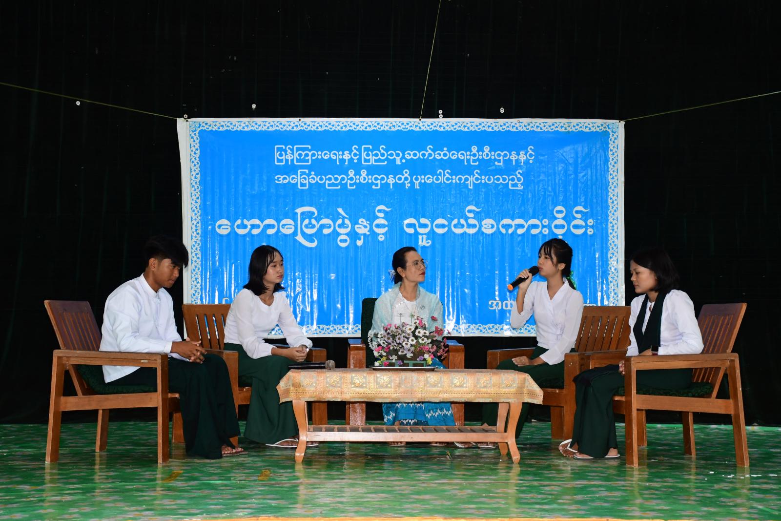 ဦးစွာ ဒက္ခိဏခရိုင် ပြန်ကြားရေးနှင့်ပြည်သူ့ဆက်ဆံရေးဦးစီးဌာန လက်ထောက်ညွှန်ကြားရေးမှူး ဒေါ်တင်တင်ချိုက အမှာစကားပြောကြားရာတွင် ကျောင်းသားလူငယ်များ၏ အတွေ့အကြုံများ၊ သင်ယူမှုများနှင့် ကိုယ်ပိုင်အမြင်များကို တစ်ဦးနှင့်တစ်ဦးဖလှယ်နိုင်စေရန်၊ စကားဝိုင်းများတွင် ပါဝင်ဆွေးနွေးခြင်းဖြင့် လူငယ်များအတွက် ကိုယ်ရည်ကိုယ်သွေးဖွံ့ဖြိုးမှု၊ စကားပြောဆိုမှုစွမ်းရည်၊ တစ်ဦးချင်းစီ၏ အသိပညာနယ်ပယ်များကို ချဲ့ထွင်ပေးစေရန်ရည်ရွယ်၍ လူငယ်စကားဝိုင်းများကို ကျင်းပဆောင်ရွက်ပေးရခြင်းဖြစ်ကြောင်းပြောကြားပြီး “ဉာဏဗလပြည့်စုံဖို့ စာဖတ်ကြစို့"ခေါင်းစဉ်ဖြင့် စာဖတ်ရှိန်မြှင့်တင်ရေး အသိပညာပေး ဟောပြောသည်။