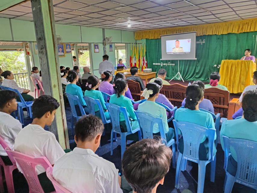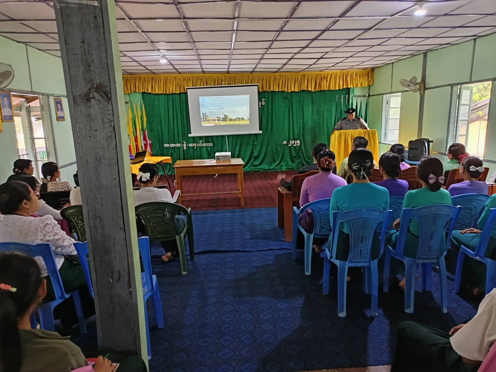 ဆက်လက်၍ မြို့နယ်ဥပဒေအရာရှိဦးဇာနည်ထက်က ဆက်သွယ်ရေးလိမ်လည်မှုနှင့်ပတ်သက်၍ တည်ဆဲဥပဒေများ၊ ဆက်သွယ်ရေးဥပဒေအကြောင်းအရာများ၊ မြို့နယ်ရဲတပ်ဖွဲ့မှူး ရဲမှူးအောင်အောင်မှ ပြစ်မှုဖြစ်စဥ်များပတ်သက်၍ ချပြရှင်းပြောကြားခဲ့ပြီး တက်ရောက်လာသည့်ကျောင်းသား၊ ကျောင်းသူလေးများက သိရှိလိုသည်များကိုပြန်လည်မေးမြန်းရာ တာဝန်ရှိသူများက ပြန်လည်ဖြေကြားပေးခဲ့ကြောင်းသိရသည်။