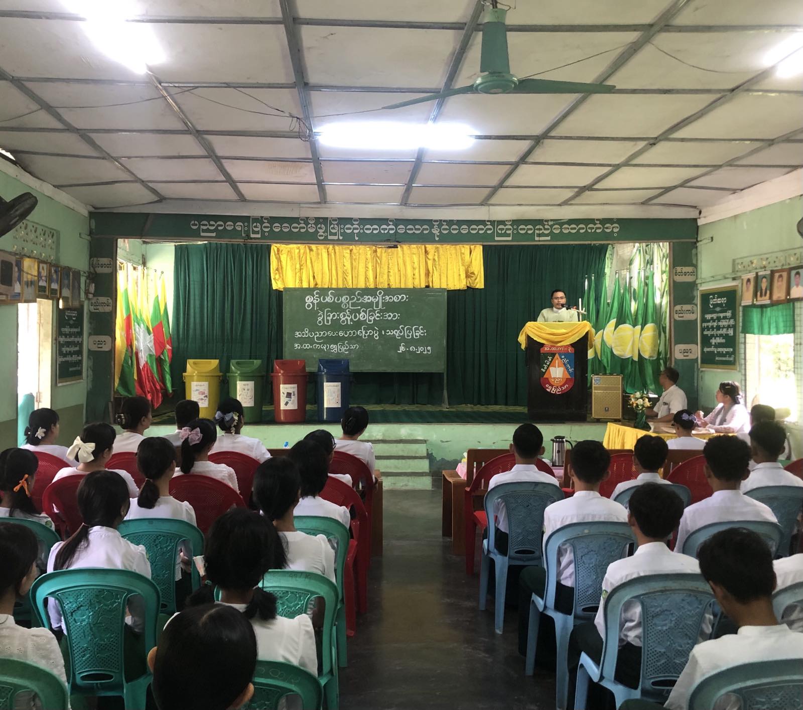 ရန်ကုန်တိုင်းဒေသကြီး၊ ရွှေပြည်သာမြို့နယ်၌ ခရိုင်ပတ်ဝန်းကျင်ထိန်းသိမ်းရေးဦးစီးဌာနမှ စွန့်ပစ်ပစ္စည်းအမျိုးအစားခွဲခြားစွန့်ပစ်ခြင်း အသိပညာပေးဟောပြာပွဲနှင့်သရုပ်ပြခြင်း အခမ်းအနားကို ဩဂုတ် ၂၆ ရက် နံနက် ၁၀ နာရီက အမှတ်(၃) အခြေခံပညာအထက်တန်းကျောင်း ပညာရတနာခန်းမ၌ ကျင်းပသည်။