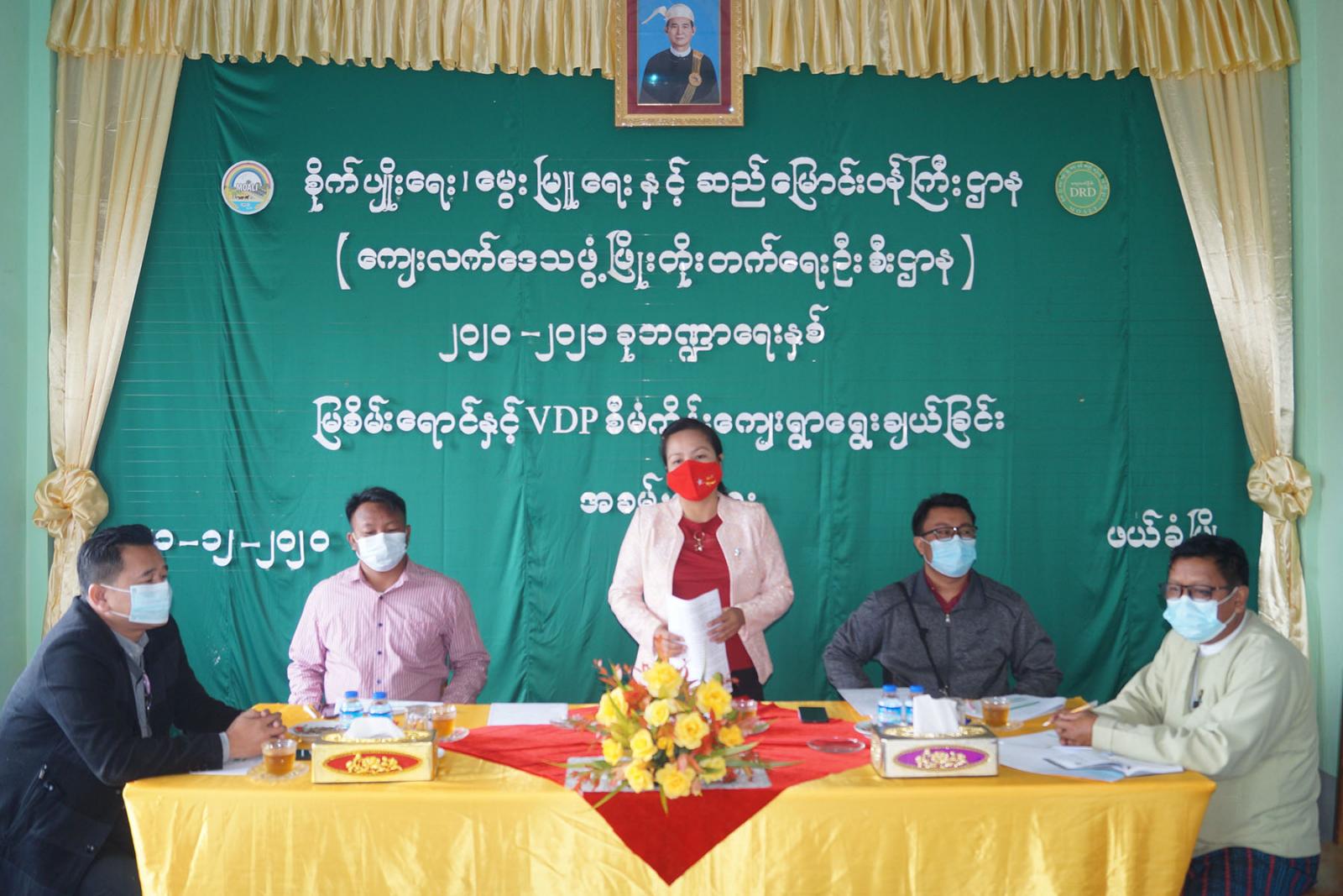 ထို့နောက် ကျေးလက်ဒေသဖွံ့ဖြိုးတိုးတက်ရေးဦးစီးဌာန မြို့နယ်ဦးစီးမှူး ဦးကျော်စွာက မြစိမ်းရောင် စီမံကိန်းကျေးရွာနှင့် ကျေးရွာဖွံ့ဖြိုး တိုးတက်ရေး လုပ်ငန်း(VDP) စီမံကိန်း ကျေးရွာများ ဦးစားပေးအဆင့်အလိုက် ရွေးချယ်ခြင်းလုပ်ငန်းများနှင့်ပတ်သက်၍ ရှင်းလင်း ပြောကြားသည်။