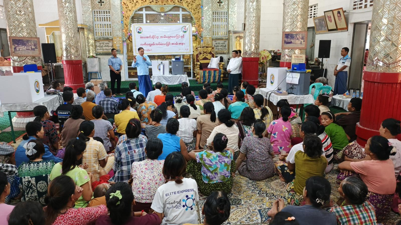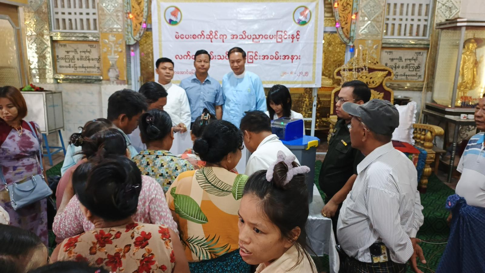 နံနက်ပိုင်းတွင် မဟာအောင်မြေအရှေ့ရပ်ကွက် မြသိန်းတန်ဓမ္မာရုံ၌ ကျင်းပရာ မြို့နယ်ရွေးကောက်ပွဲကော်မရှင်အဖွဲ့ခွဲ ဥက္ကဋ္ဌ ဦးမျိုးဝင်းက မဲဆန္ဒရှင်များအား မြန်မာအီလက်ထရော နစ်မဲပေးစက်(MEVM) ဖြင့် သုံးစွဲပုံအဆင့်ဆင့်၊ ထိန်းချုပ်စက်ကိုင်တွယ်အသုံးပြုပုံများကို ရှင်းလင်းဟောပြောပြီးနောက် တက်ရောက်သူများ ကိုယ်တိုင်စမ်းသပ်မဲပေးခြင်းများကို ဆောင်ရွက်သည်။