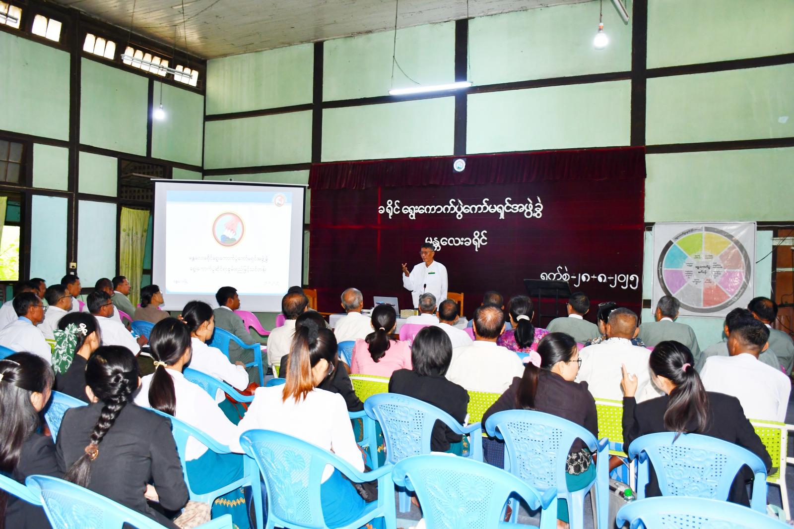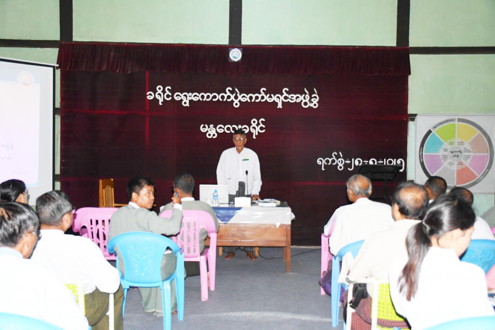 သင်တန်းတွင် တိုင်းဒေသကြီးရွေးကောက်ပွဲကော်မရှင်အဖွဲ့ဥက္ကဋ္ဌ ဦးကျော်သန်းထွန်းက ခရိုင်ရွေးကောက်ပွဲကော်မရှင်အဖွဲ့ဝင်များအနေဖြင့် လွတ်လပ်ပြီးတရားမျှတသော ပါတီစုံဒီမိုကရေစီအထွေထွေရွေးကောက်ပွဲ အောင်မြင်ရေးအတွက် ရွေးကောက်ပွဲအသိပညာပေးလုပ်ငန်းများဆောင်ရွက်ပေးရန်၊ မဲပေးစက်ကိုင်တွယ်အသုံးပြုရာတွင် ကျွမ်းကျင်စွာလုပ်ကိုင်တတ်ရန်း၊ မဲစာရင်းမှန်ကန်မှုရှိစေရန်၊ ရွေးကောက်ပွဲတွင် ကော်မရှင်များ၊ ပါတီများ၊ ပြည်သူများပါရှိမှသာ ရွေးကောက်ပွဲအောင်မြင်မည်ဖြစ်ကြောင်း၊ မဲစာရင်းရလဒ်များကို မဲပေးစက်ဖြင့် အတည်ပြုမည်ဖြစ်ကြောင်းနှင့် လုံခြုံရေးပိုင်းဆိုင်ရာကိစ္စရပ်များ ရှင်းလင်းပြောကြားသည်။ ဆက်လက်ပြီး ခရိုင်ရွေးကောက်ပွဲကော်မရှင်အဖွဲ့ခွဲ လက်ထောက်ညွှန်ကြားရေးမှူး ဦးသက်ဆွေဦးက မြို့နယ်အလိုက်မဲစာရင်းတွင်ပါရှိမည့်သူများကို မဲစာရင်းပါရှိမှု ရှိ မရှိ သေချာစီစစ်ထားရန်၊ ရွေးကောက်ပွဲကို အပိုင်း(၃)ပိုင်းဖြင့် ပြုလုပ်သွားမည်ဖြစ်ပြီးကြောင်း ရှင်းလင်းပြောကြားသည်။ ယင်းနောက် တိုင်းဒေသကြီးရွေးကောက်ပွဲကော်မရှင်အဖွဲ့ဥက္ကဋ္ဌနှင့် လက်ထောက်ညွှန်ကြားရေးမှူးတို့က ရွေးကောက်ပွဲဆိုင်ရာစွမ်းရည်မြှင့် သင်တန်း ဆက်လက်သင်ကြားပို့ချသည်။