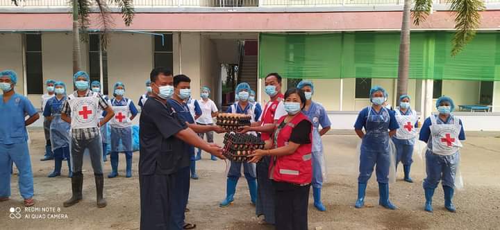 ဆောင်ရွက်ရာတွင် အင်းစိန်(GTI) Quarantine Center(၂)တွင် Quarantine ဝင်ထားသည့် အဆောင်များအတွင်း၌ ဆေးဖျန်းခြင်း၊သန့်ရှင်းရေးဆောင်ရွက်ခြင်းများကို ကြက်ခြေနီအသင်းခွဲ (အင်းစိန်)မှ တာဝန်ရှိသူများက ဆောင်ရွက်ခဲ့ကြပြီး မြန်မာနိုင်ငံ ကြက်ခြေနီ အသင်းခွဲ၊ ဘေးဒုက္ခဆိုင်ရာ စီမံခန့်ခွဲရေးဌာန၊ညွှန်ကြားရေးမှူး ဒေါ်စမ်းစမ်းမော်နှင့် ရန်ကုန်တိုင်း ဒေသကြီး၊ ကြက်ခြေနီအသင်းခွဲ၊ကြီးကြပ်မှုကော်မတီဝင် ဦးကျော်မြင့်အောင်တို့မှ အင်းစိန် မြို့နယ်၊ ကြက်ခြေနီအသင်းခွဲ တပ်ဖွဲ့ ဝင်များကို အားပေးစကားပြောကြားခဲ့ပြီး ကြက်ဥ အလုံး(၃၀၀)ကို လှူဒါန်းခဲ့ကြောင်း သိရသည်။