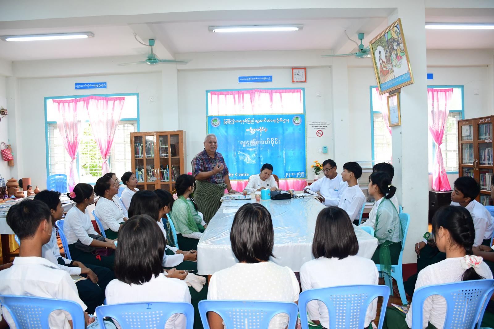 လူငယ်များအနေဖြင့် စာဖတ်ခြင်းကို နေ့စဉ်ဘဝ၏ အစိတ်အပိုင်းတစ်ခုအဖြစ် ထည့်သွင်းလာစေရန်၊ စာအုပ်၊ စာပေများနှင့် ရင်းနှီးလာစေရန်နှင့် စာဖတ်ခြင်းမှတစ်ဆင့် ပျော်ရွှင်မှုနှင့် အသိပညာများကို ရရှိစေရန်ရည်ရွယ်ကျင်းပသည့် လူငယ်စာဖတ်ဝိုင်းကို ယနေ့နံနံပိုင်းတွင် ဒက္ခိဏခရိုင် ပြန်ကြားရေးနှင့်ပြည်သူ့ဆက်ဆံရေးဦးစီးဌာန၊ ပြည်သူ့စာကြည့်တိုက်၌ ကျင်းပရာ နေပြည်တော် ပြန်ကြားရေးနှင့်ပြည်သူ့ဆက်ဆံရေးဦးစီးဌာန ညွှန်ကြားရေးမှူး ဒေါ်သင်းသင်းဇင်၊ လက်ထောက်ညွှန်ကြားရေးမှူး ဒေါ်တင်တင်ချိုနှင့် တာဝန်ရှိသူများ၊ နေပြည်တော်စာပေဝိုင်းမှ စာရေးဆရာများဖြစ်သည့် ဆရာ သဘာဝနှင့် ဆရာ အိုင်ပီ-မျိုးအောင်၊ ဆရာမများနှင့် ကျောင်းသား၊ ကျောင်းသူများ၊ စာပေဝါသနာရှင်များ တက်ရောက်သည်။