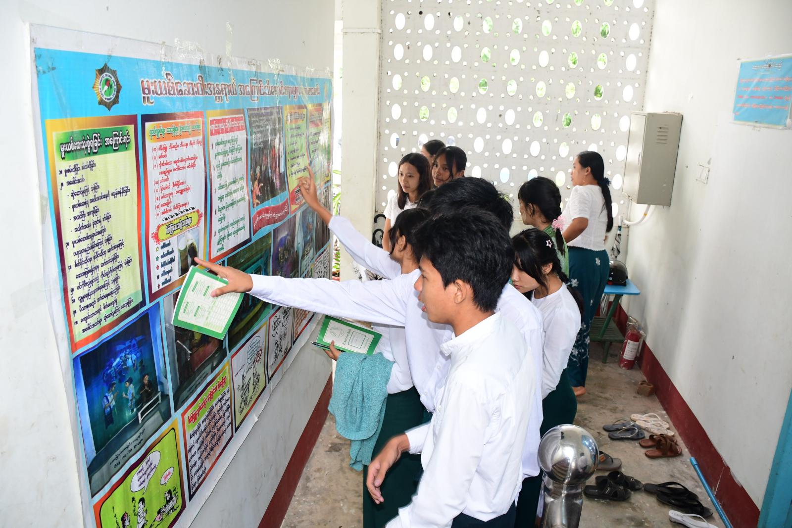 စာဖတ်ဝိုင်းအပြီးတွင် ဒက္ခိဏခရိုင် ပြန်ကြားရေးနှင့်ပြည်သူ့ဆက်ဆံရေးဦးစီးဌာနမှ ခင်းကျင်းပြသထားသည့် သုတ၊ ရသ စာအုပ်၊ စာစောင်များနှင့် နံရံကပ်စာစောင်များကို ကျောင်းသား၊ ကျောင်းသူများနှင့် တက်ရောက်လာကြသူများက စိတ်ပါဝင်စားစွာ လေ့လာကြည့်ရှုခဲ့ကြကြောင်း သိရသည်။