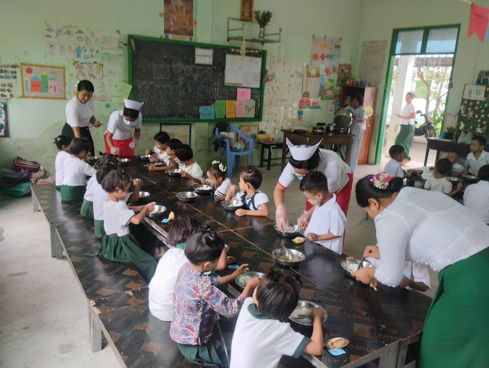 မန္တလေးတိုင်းဒေသကြီး ကျောက်ဆည်ခရိုင် စဉ့်ကိုင်မြို့နယ်တွင် ကျောင်းကျန်းမာရေးသီတင်းပတ် လှုပ်ရှားမှုအဖြစ် KG ကျောင်းသား/ကျောင်းသူများအား အာဟာရကျွေးမွေးခြင်းကို ယနေ့နံနက်ပိုင်းက မြို့နယ်အတွင်းရှိ အခြေခံပညာကျောင်းများ၌ ပြုလုပ်သည်။