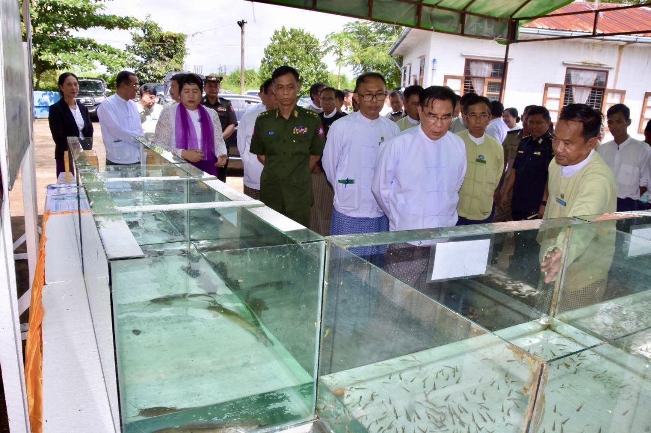 ထို့နောက် တိုင်းဒေသကြီးငါးလုပ်ငန်းဦးစီးမှူးဒေါက်တာစုမျိုးသွယ်က တိုင်းရင်းငါးမျိုးငါးခူဆေးထိုးသားဖောက်ခြင်းနှင့် ပတ်ဝန်းကျင်သဟဇာတဖြစ်သည့် ရေ ငန်ပုစွန်မွေးမြူခြင်းသင်တန်းဖွင့်လှစ်ရခြင်းနှင့်ပတ်သက်၍ ရှင်းလင်းပြောကြားခဲ့သည်။ ၎င်းနောက် တိုင်းဒေသကြီးဝန်ကြီးချုပ်နှင့်တာဝန်ရှိသူများသည် သင် တန်းသား/သူများအား ရင်းရင်းနှီးနှီးနှုတ်ဆက်အားပေးစကားပြောကြားခဲ့ပြီး သင်တန်းတွင်ဖွင့်လှစ်သင်ကြားမည့် သင်ထောက်ကူပစ္စည်များ၊ အောင်မြင်စွာ သိပ္ပံနည်းကျသားဖောက်ထားရှိသည့် တိုင်းရင်းငါးမျိုးများအား လှည့်လည်ကြည့်ရှုအားပေးခဲ့ကြသည်။