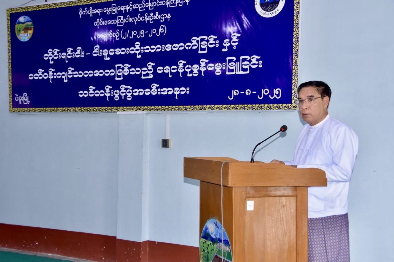 ရှေးဦးစွာတိုင်းဒေသကြီးဝန်ကြီးချုပ်ဦးမျိုးဆွေဝင်းက နိုင်ငံတော်ဖွံ့ဖြိုးတိုးတက်ရေးတွင် စိုက်ပျိုးရေးနှင့်မွေးမြူရေးကဏ္ဍသည် မရှိမဖြစ် အဓိကနှင့်အခြေခံအုပ်မြစ်တစ်ခုဖြစ်ပြီး ပြည်သူများ၏လူမှုစီးပွားဘဝမြှင့်တင်ရေးအတွက် စားဝတ်နေရေးကဏ္ဍသည် အာဟာရပြည့်ဝပြီးဘေးကင်းလုံခြုံသောငါး/ပုစွန်ရိက္ခာအစား အစာများကိုထုတ်ယူစားသုံးခြင်းဖြင့် ကျန်းမာသန်စွမ်းပြီး လူ့စွမ်းအားအရင်းအမြစ်များ ဖွံ့ဖြိုးတိုးတက်လာမှာဖြစ်ကြောင်း၊ ပဲခူးတိုင်းဒေသကြီးအတွင်းမှ နှစ်စဉ်ငါးပိဿာထောင်ပေါင်း(၂၉၀၀၀၀)ကျော်ထုတ်လုပ်နိုင်ပြီး ဒေသတွင်းစားသုံးမှုသာမက အခြားပြည်နယ်/တိုင်းဒေသကြီးများသို့ ဖြန့်ဖြူးတင်ပို့ပေးလျက်ရှိကြောင်း၊ တိုင်းဒေသကြီးအတွင်း ငါးအခြေခံတန်ဖိုးမြှင့် MSME ထုတ်ကုန်အများအပြားထုတ်လုပ်လျက်ရှိရာ ငါးသယံဇာတပြုန်းတီးလျော့နည်းမှုမရှိစေရေးနှင့် ငါးသယံဇာတစဉ်ဆက်မပြတ်ဖွံ့ဖြိုးတိုးတက်စေရေး သဘာဝသားဖောက်ခြင်းထက် တိုင်းဒေသကြီးအစိုးရအဖွဲ့အစီအစည်ဖြင့် ရေချိုတိုင်းရင်းငါးမျိုးအား သိပ္ပံ နည်းကျဆေးထိုးသားဖောက်ပြုစုမွေးမြူ၍ ပြန်လည်ဖြည့်တင်းပေးလျက်ရှိကြောင်း၊ ယခုသင်တန်းတွင် တိုင်းရင်းငါးမျိုးများအား မွေးမြူရေးလုပ်ငန်းရှင်များ၊ ပဲခူးတက္ကသိုလ် သတ္တဗေဒအထူးပြုကျောင်းသား/သူများ၊ ဌာနတွင်းဝန်ထမ်းများအနေဖြင့် သားဖောက်မွေးမြူပြုစုစောင့်ရှောက်ခြင်းဆိုင်ရာအသိပညာများ သိရှိလာနိုင်သည့်အပြင် ပုစွန်မွေးမြူခြင်းလုပ်ငန်းတွင်အဓိကကျသည့်ကန်ပြင်ဆင်ခြင်း၊ ရေအရည်အသွေးထန်းသိမ်းခြင်းနှင့် အစာကျွေးခြင်းစသည့် ပုစွန်မွေးမြူရေးကျင့်စဉ်များကိုလည်းသိရှိနားလည်နိုင်မှာဖြစ်ကြောင်း၊ သင်တန်းသား/သူများအနေဖြင့် သင်တန်းတွင်စာတွေ့လက်တွေ့သင်ကြားပေးမည့် သင်ခန်းစာများကို စနစ်တကျလေ့လာမှတ်သားပြီး တိုင်းဒေသကြီးအတွင်းစားသုံးမှုဖူလုံရုံမျှမက နိုင်ငံတော်အတွက်အားထားရမည့်အရည်အသွေးပြည့်မီသော ရေထွက်ကုန်ပစ္စည်းများပိုမိုထုတ်လုပ်နိုင် အောင်ကြိုးစားသွားကြစေလိုကြောင်း ပြောကြားခဲ့သည်။