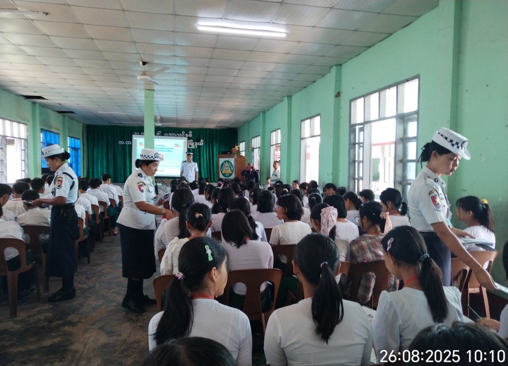 ရန်ကုန်တိုင်းဒေသကြီး၊ မှော်ဘီခရိုင်၊ မှော်ဘီမြို့နယ်၌ ယာဉ်အန္တရာယ်ကင်းဝေးစေရေးယာဉ်စည်းကမ်း၊ လမ်းစည်းကမ်းဆိုင်ရာအသိပညာပေးလုပ်ငန်းများကို ဆောင်ရွက်လျက်ရှိရာ ဩဂုတ်လ ၂၆ ရက်နေ့နံနက် ၁၀ နာရီအချိန်က မှော်ဘီမြို့နယ်အ.ထ.က(မြောင်းတကာ) ကျောင်းမြတ်လေးခန်းမ၌ ယာဉ်စည်းကမ်း၊ လမ်းစည်းကမ်း အသိပညာပေးဟောပြောခဲ့ သည်။