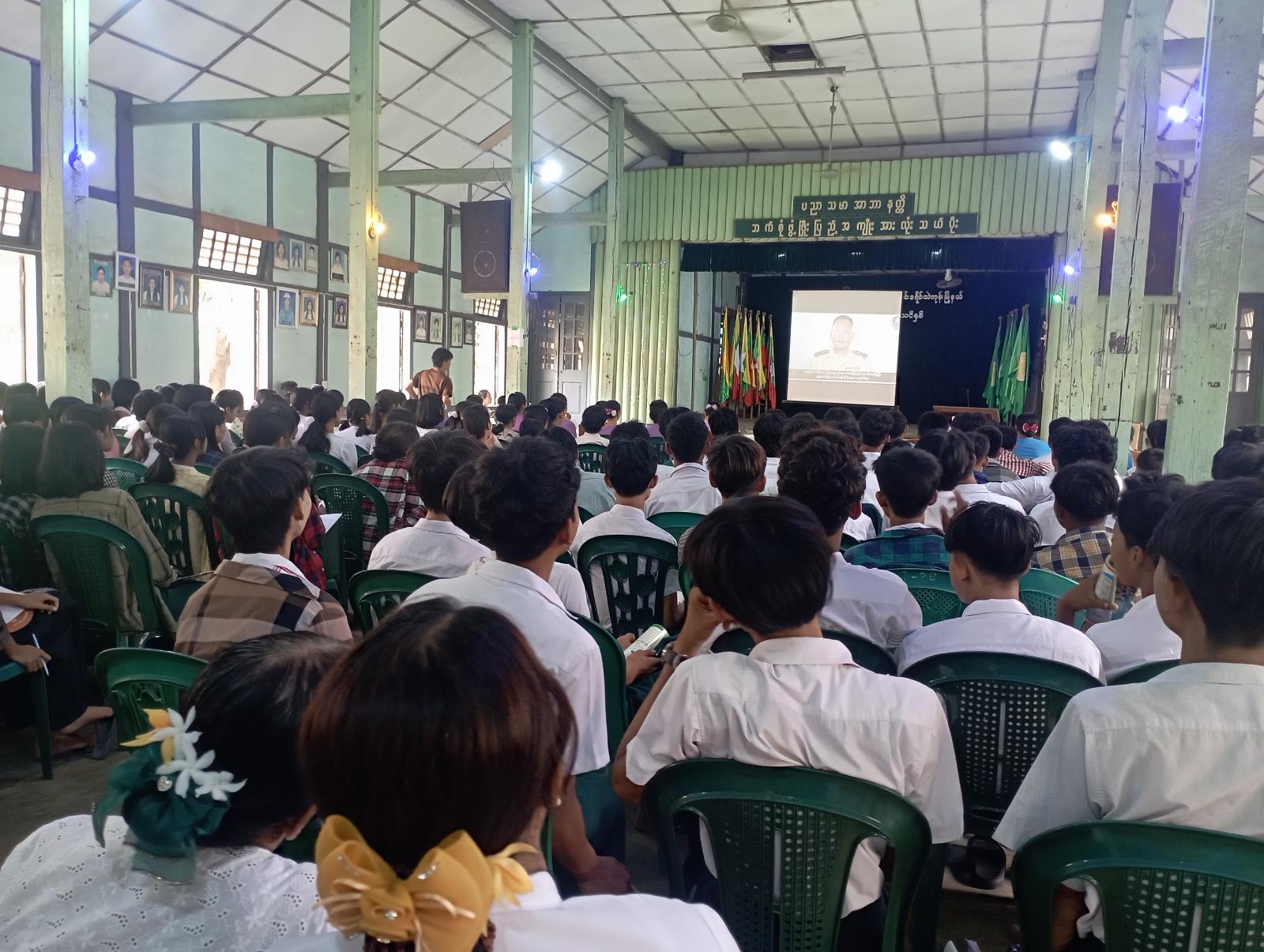 ပဲခူးတိုင်းဒေသကြီး၊ နတ်တလင်းခရိုင်၊ သဲကုန်းမြို့၌ ဆက်သွယ်ရေးလိမ်လည်မှုတိုက်ဖျက်ရေးဆိုင်ရာ အသိပညာပေးဟောပြောခြင်းနှင့် အသိပညာပေးဗီဒီယိုများပြသခြင်းကို ယနေ့နံနက် ၁၀ နာရီက အခြေခံပညာအထက်တန်းကျောင်း သဲကုန်း၏ သာဓုခန်းမတွင် ဆောင်ရွက်ခဲ့ကြောင်း သိရသည်။