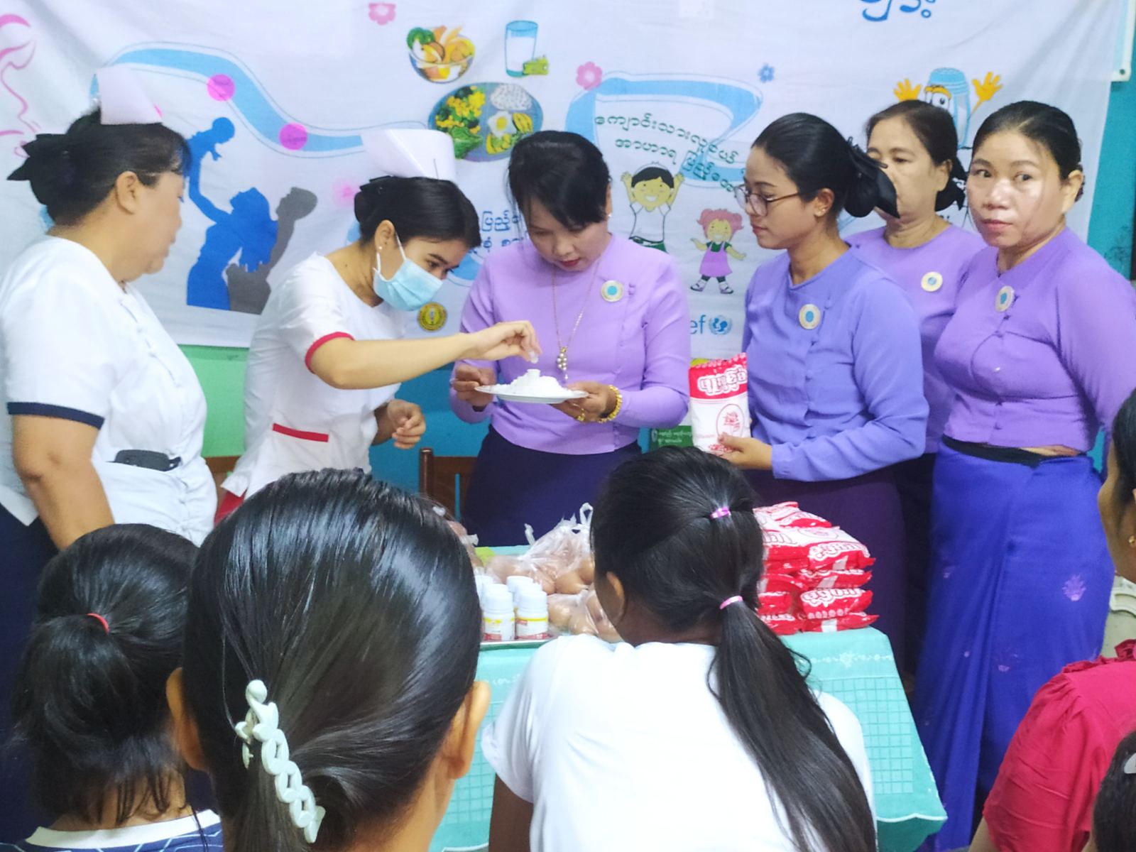 ဆက်လက်၍ ငါးနှစ်အောက်ကလေးများနှင့် ကိုယ်ဝန်ဆောင်မိခင်များအား ခန္ဓာကိုယ်ဖွံ့ဖြိုးရန်အတွက် ဗီတာမင်-A နှင့် သန်ချဆေးတိုက်ကျွေးပေးခဲ့ကြသည်။ ထို့နောက် ကမာရွတ်ခရိုင် မိခင်နှင့်ကလေးစောင့်ရှောက်မှုကြီးကြပ်ရေးအဖွဲ့ဥက္ကဋ္ဌ ဒေါ် နီနီအေး၊ မြို့နယ်မိခင်နှင့်ကလေးစောင့်ရှောက်ရေးအသင်းဥက္ကဋ္ဌ ဒေါ်နန်းကလျာအေး၊ တာဝန်ရှိသူမျာက ကိုယ်ဝန်ဆောင်မိခင်များအား တစ်ဦးလျှင် ကြက်ဥနှင့် အိုင်အိုဒင်းဆားများ ပေးအပ်ခဲ့ကြောင်း သိရသည်။