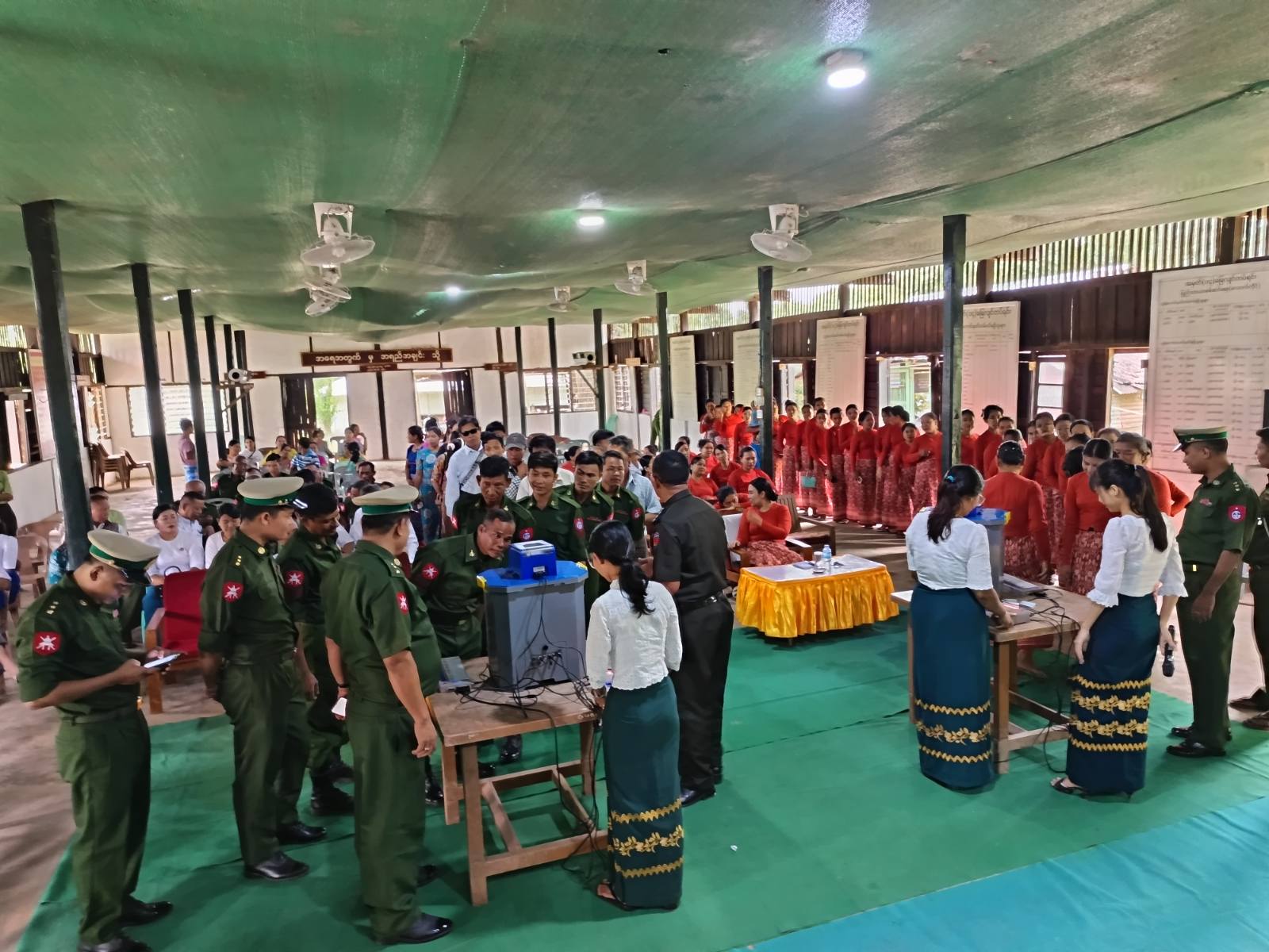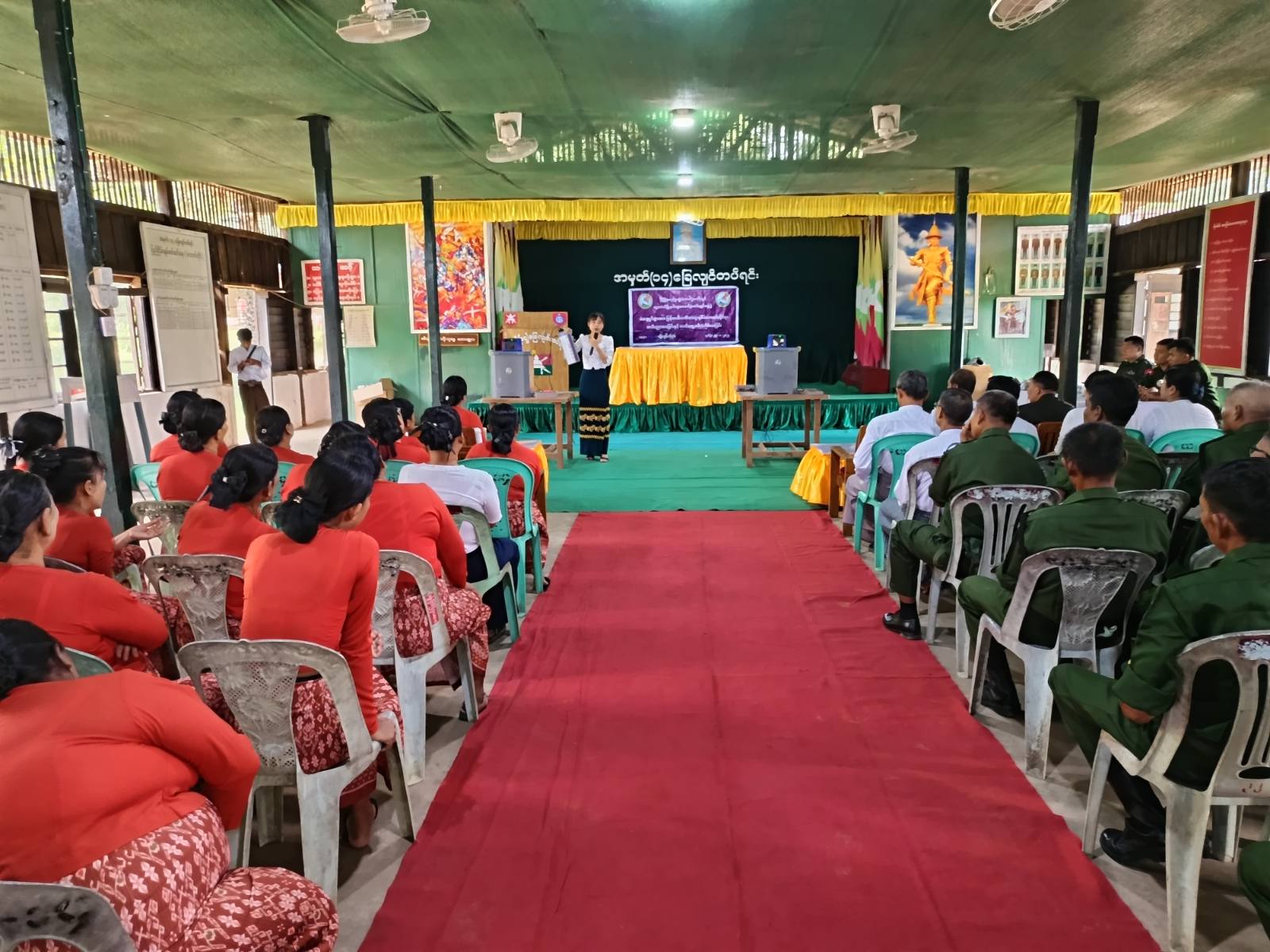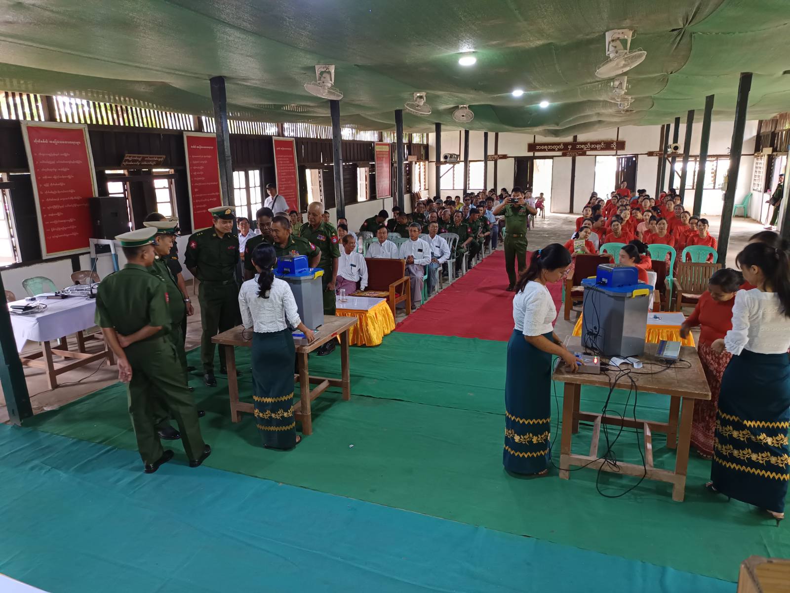 ပဲခူးတိုင်းဒေသကြီး၊ ပြည်ခရိုင်၊ ရွှေတောင်မြို့တွင် ပါတီစုံဒီမိုကရေစီအထွေထွေရွေးကောက်ပွဲ အောင်မြင်စွာကျင်းပနိုင်ရေးအတွက် မြန်မာအီလက်ထရောနစ်မဲပေးစက် (MEVM) ကိုင်တွယ်အသုံးပြုနည်း မဲပေးခြင်းဆိုင်ရာ အသိပညာပေးခြင်းနှင့် လက်တွေ့စမ်းသပ်မဲပေးခြင်းသင်တန်းကို ယမန်နေ့ နေ့လယ်ပိုင်းက ရွှေတောင်မြို့နယ် အမှတ် (၁၄) ခြေမြန်တပ်ရင်း၌ကျင်းပသည်။