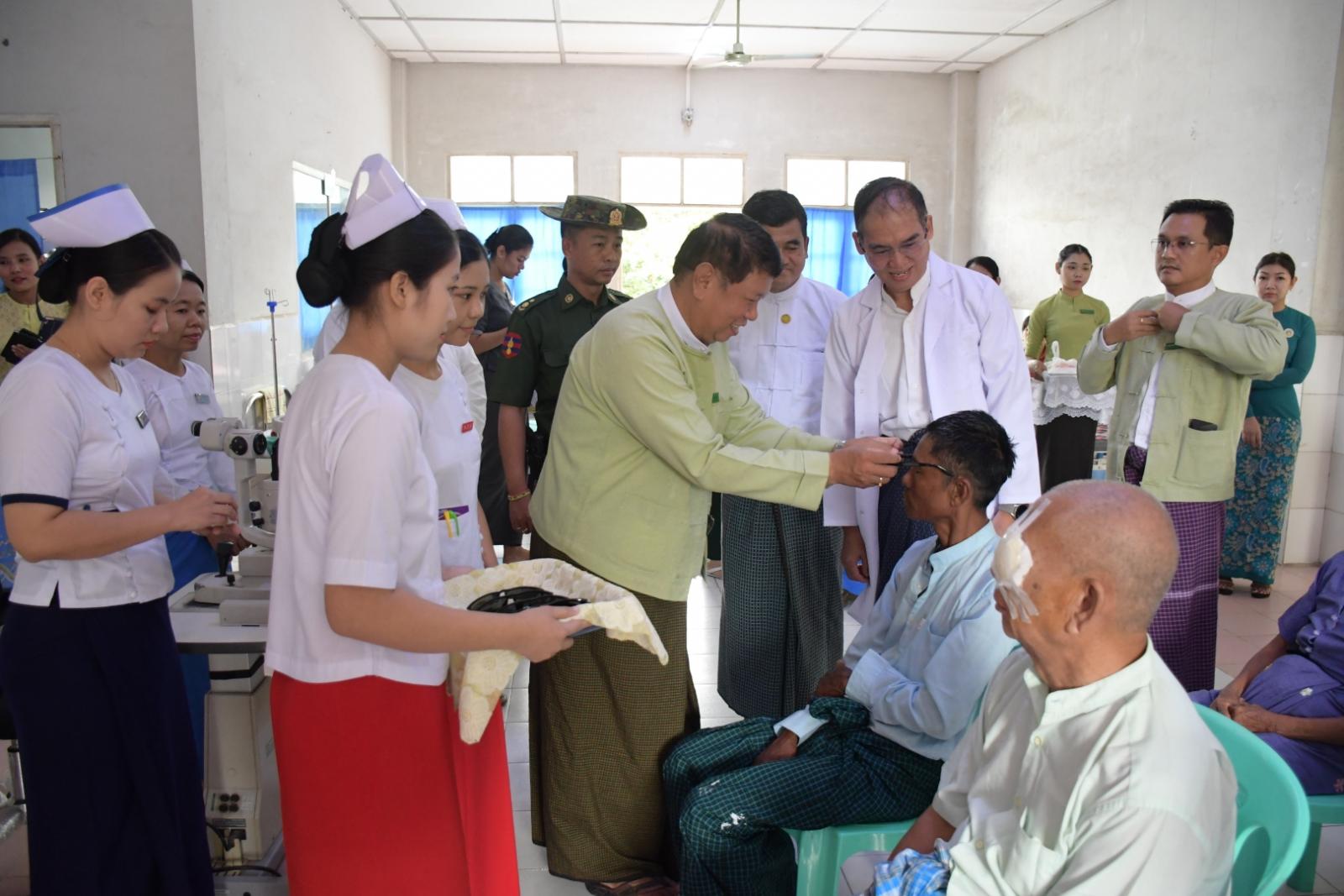 ကျန်းမာရေးဝန်ကြီးဌာနနှင့် ပဲခူးတိုင်းဒေသကြီးအစိုးရအဖွဲ့တို့၏ဦးဆောင်လမ်းညွှန်မှုဖြင့် တောင်ငူခရိုင်ပြည်သူ့ဆေးရုံကြီး၌ သြဂုတ် ၂၀ ရက်နေ့မှစတင်၍ မျက်စိဝေဒနာရှင် ၂၆၁ ဦးကိုစမ်းသပ်စစ်ဆေးခဲ့ပြီး မျက်စိအတွင်းတိမ်ခွဲစိတ်လူနာ ၅၂ ဦးအနက်မှ ၂၃ ဦးကို ယနေ့တွင် အခမဲ့ ခွဲစိတ်ကုသမှုဆောင်ရွက်ပေးသည်။