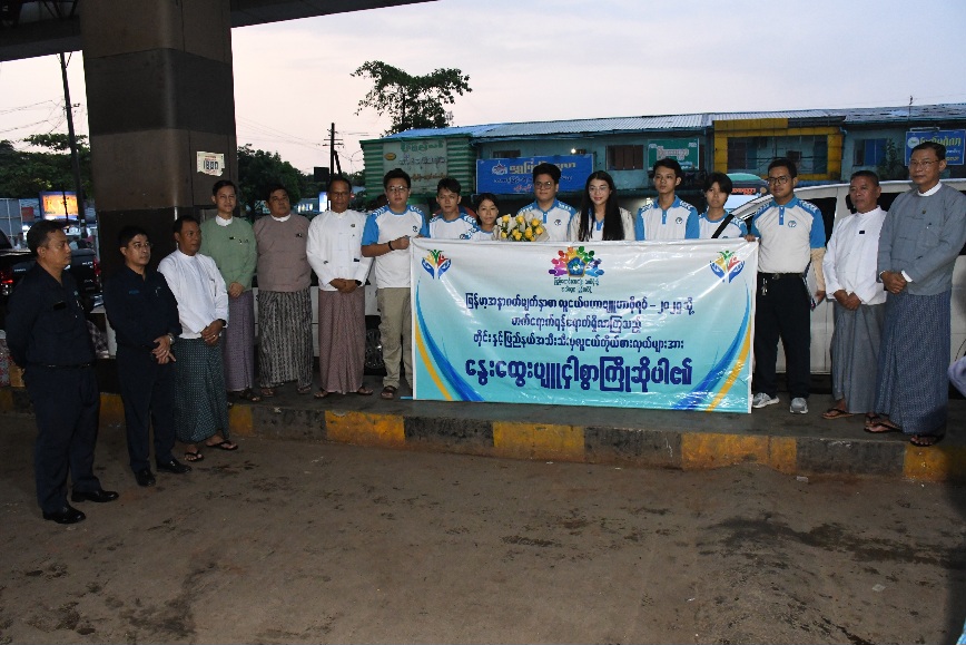 ထိုကဲ့သို့ မြန်မာ့အနာဂတ်မျက်နှာစာလူငယ်မဟာဗျူဟာဖိုရမ် - ၂၀၂၅ ( Future Front Myanmar Youth Strategy Forum-2025) သို့တက်ရောက်ရန်ရောက်ရှိလာသည့် ကယားပြည်နယ်နှင့်စစ်ကိုင်းတိုင်းဒေသကြီးတို့မှ လူငယ်ကိုယ်စားလှယ်အဖွဲ့များအား ရန်ကုန်တိုင်းဒေသကြီးအစိုးရအဖွဲ့ စီးပွားရေးရာဝန်ကြီး ဦးမျိုးမြင့်အောင်နှင့် တိုင်းဒေသကြီး/ခရိုင်အဆင့်ဌာနဆိုင်ရာတာဝန်ရှိသူများ၊ ရန်ကုန်တိုင်းဒေသကြီးအားကစားနှင့်လူငယ်ရေးရာအထောက်အကူပြုလုပ်ငန်းကော်မ တီမှကော်မတီဝင်များက နွေးထွေးပျူငှာစွာကြိုဆိုခဲ့ကြပြီး တည်းခိုနေထိုင်မည့်သက်ဆိုင်ရာနေရာများသို့ ရန်ကုန်တိုင်းဒေသကြီးပုဂ္ဂလိက သယ်ယူပို့ဆောင်ရေးကြီးကြပ်မှုကော်မတီမှ မော်တော်ယာဉ်များဖြင့်လိုက်လံပို့ဆောင်ပေးခဲ့ကြသည်။