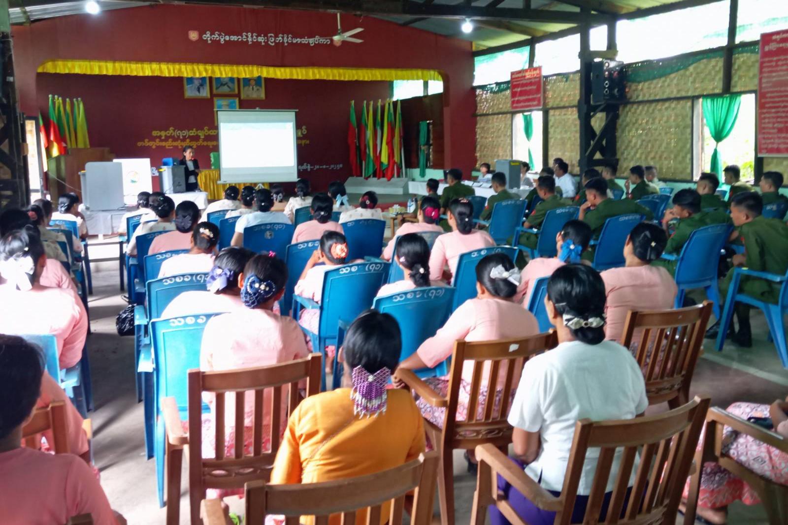 ရှေးဦးစွာ မြို့နယ်ရွေးကောက်ပွဲကော်မရှင်အဖွဲ့ခွဲရုံးမှ မြို့နယ်ရွေးကောက်ပွဲအရာရှိ ဒေါ်ခင်သီတာခိုင်က မြန်မာအီလက်ထရောနစ်မဲပေးစက် (MEVM) အကြောင်းနှင့် မဲပေးပုံအဆင့်ဆင့်တို့ကို ရှင်းလင်းဆွေးနွေးပြီး တပ်မမှူးဗိုလ်မှူးကြီး ကျော်ဆွေလင်းနှင့်တပ်ဖွဲ့ဝင်များ၊ မိသားစုဝင်များက လက်တွေ့စမ်းသပ်မဲပေးခြင်း ပြုလုပ်ကာ မဲရလာဒ်အား လက်တွေ့သရုပ်ပြထုတ်ပြန်ကြေငြာခြင်းတို့ ပြုလုပ်ခဲ့ကြောင်း သိရသည်။