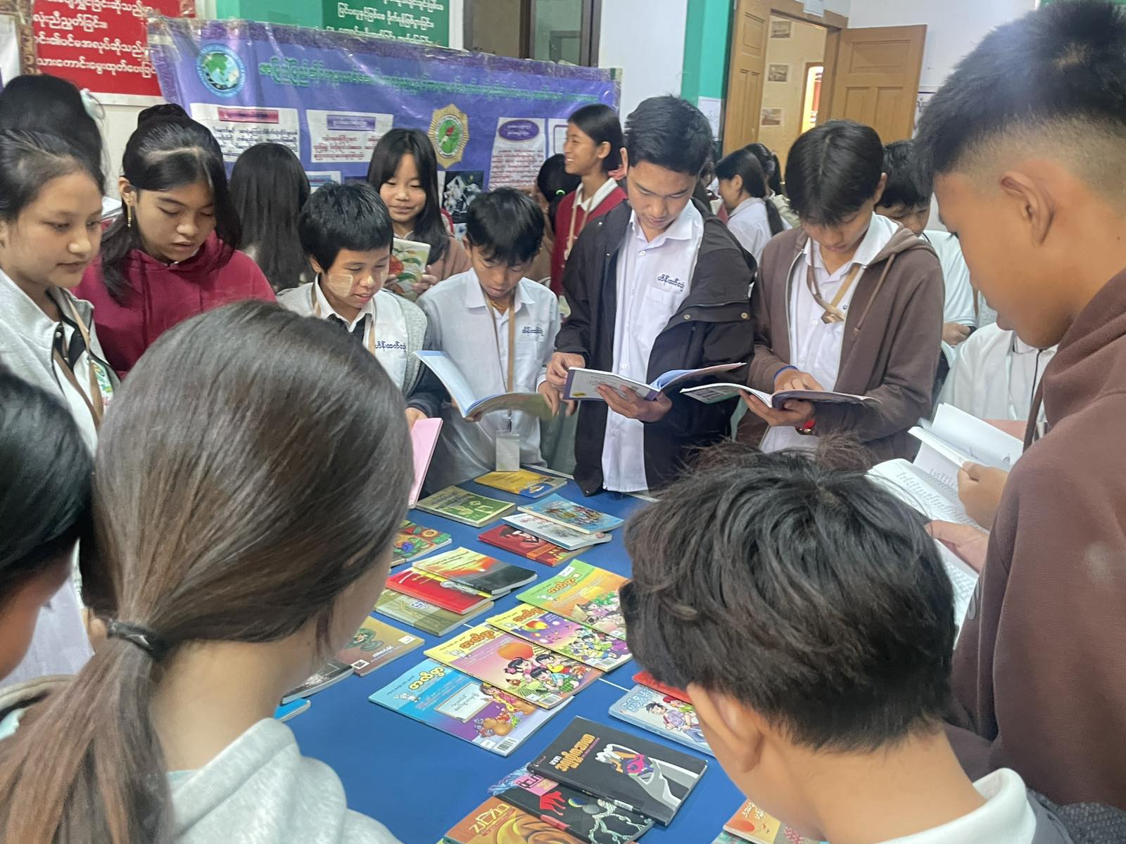 ဆက်လက်ပြီး မေးမြန်းချက်များ ပြန်လည်ဖြေကြားပေးခဲ့သော ကျောင်းသား/ ကျောင်းသူများအား တာ၀န်ရှိသူများက ဆုများ ပေးအပ်ချီးမြှင့်ခဲ့ပြီးနောက် ပြင်ဦးလွင်ခရိုင် ပြန်ကြားရေးနှင့်ပြည်သူ့ဆက်ဆံရေးဦးစီးဌာနမှ တာ၀န်ရှိသူများသည် ကျောင်းသား/ ကျောင်းသူများအား အသိပညာပေးနံရံကပ်စာစောင်များ၊ သုတ၊ ရသစာအုပ်များ ခင်းကျင်းပြသပေးသည်။