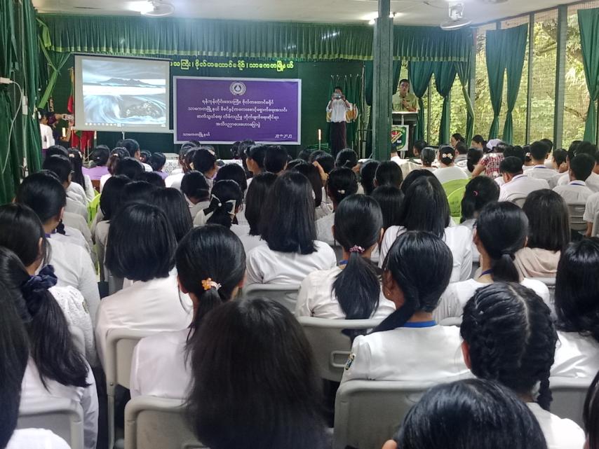 ရန်ကုန်တိုင်းဒေသကြီး၊ ဗိုလ်တထောင်ခရိုင်၊ သာကေတမြို့နယ်၊ ၇/အနောက်ရပ်ကွက်အမှတ် (၂) အခြေခံပညာအထက်တန်းကျောင်း စိန်ညီလာခန်းမ၌ သာကေတမြို့နယ် မိခင်နှင့်ကလေးစောင့်ရှောက်ရေးအသင်းမှ ကျင်းပပြုလုပ်သော ဆက်သွယ်ရေးလိမ်လည်မှုတိုက်ဖျက်ရေးဆိုင်ရာ အသိပညာပေးဟောပြောပွဲကို ယနေ့ ညနေ (၂) နာရီခွဲချိန်၌ ကျင်းပခဲ့သည်။