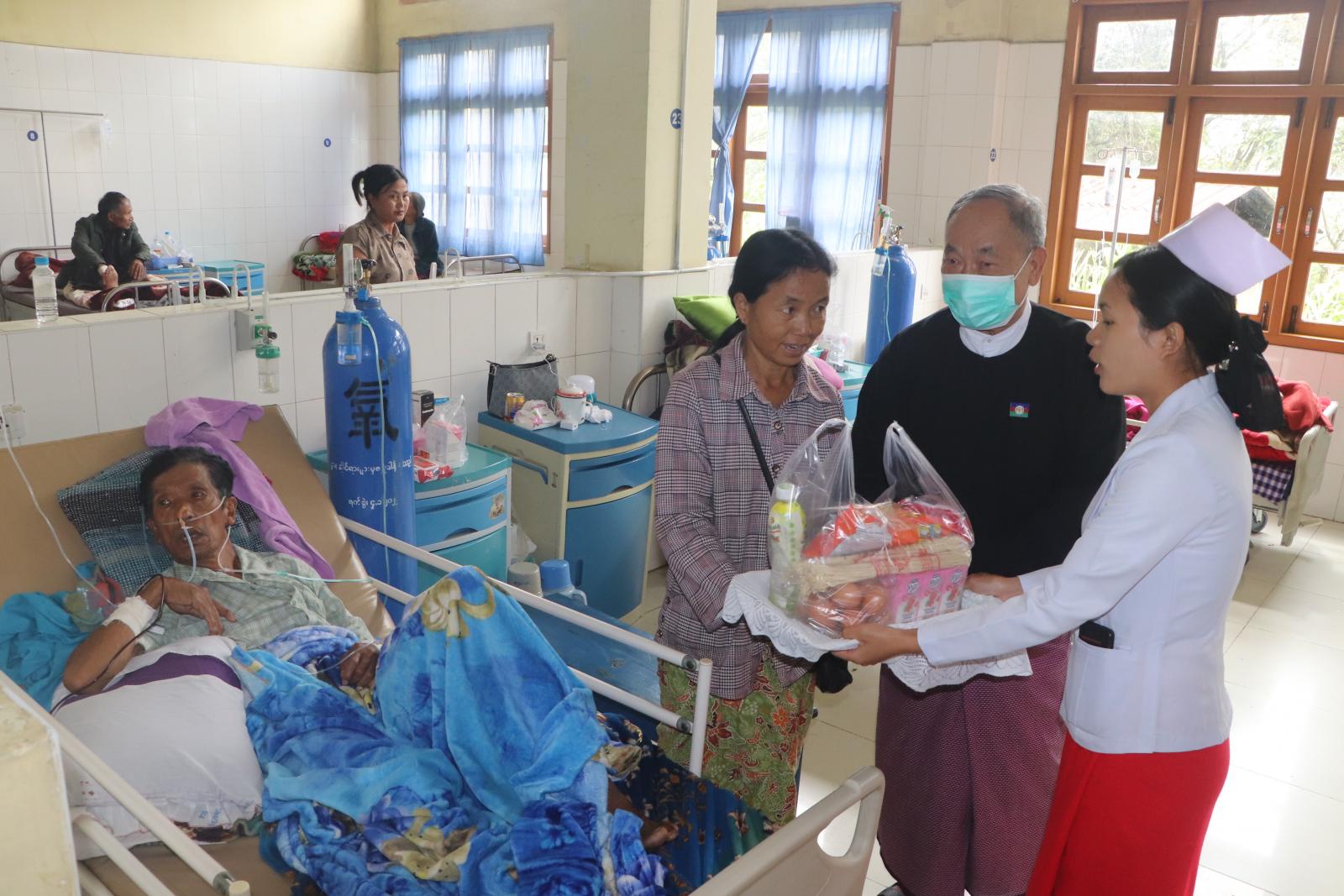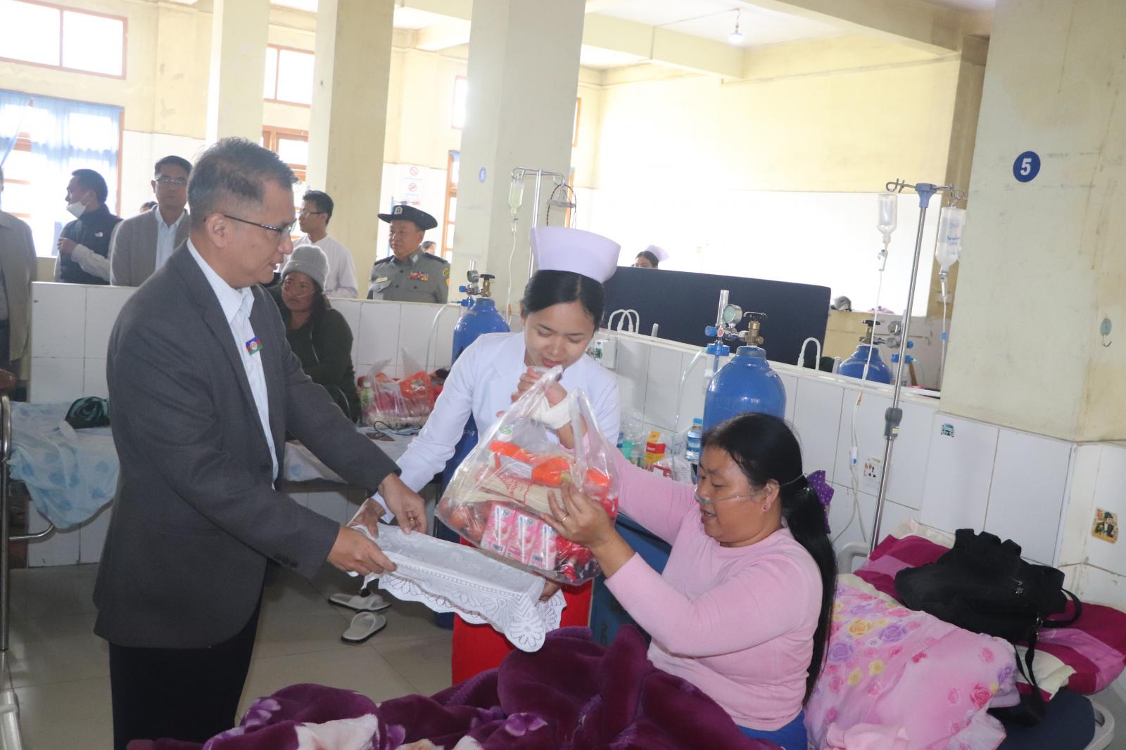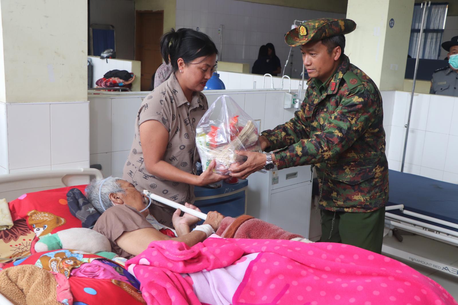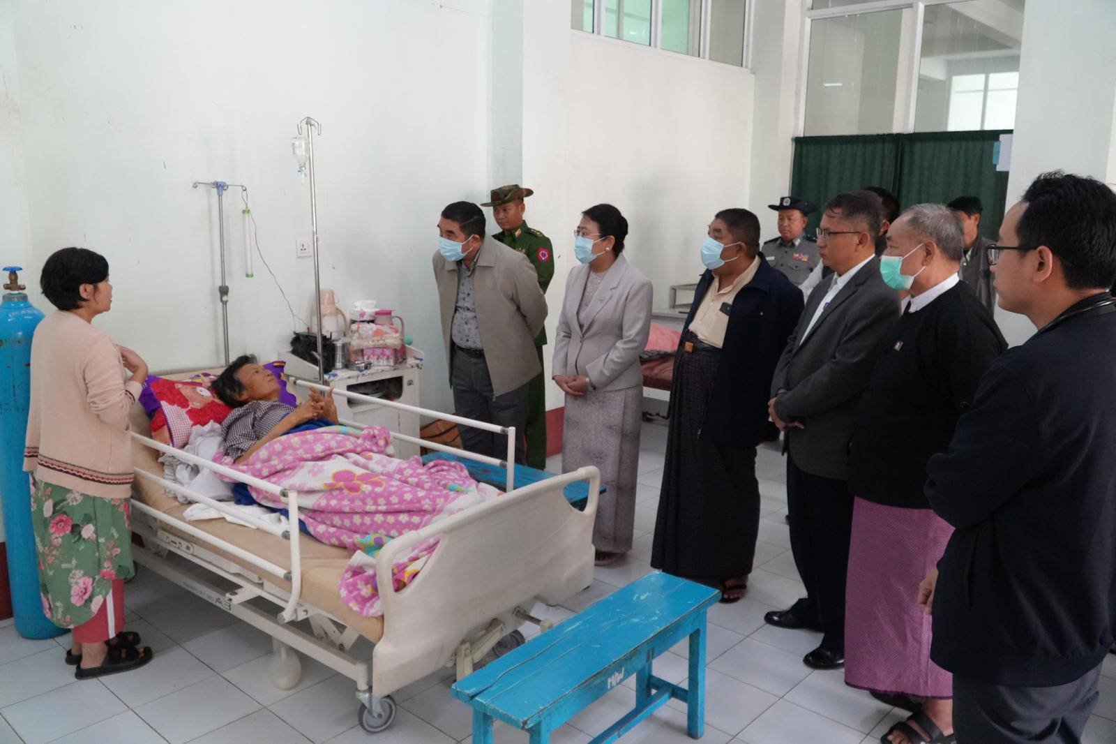 ချင်းပြည်နယ်၊ ဟားခါးပြည်သူ့ဆေးရုံးကြီးတွင် အတွင်းလူနာအဖြစ် ဆေးကုသမှုခံယူနေသောလူနာများကို ချင်းပြည်နယ်ဝန်ကြီးချုပ် ဒေါက်တာဝုန်ဆွန်းထန်နှင့်ဇနီး၊ အနောက်မြောက်တိုင်း စစ်ဌာနချုပ် ဒုတိယတိုင်းမှူး ဗိုလ်မှူးချုပ်မိုးဟိန်း၊ ပြည်နယ်ဝန်ကြီးများ၊ ပြည်နယ်ဥပဒေချုပ်၊ စစ်ဗျူဟာ (ဟားခါးအခြေချ) စစ်ဗျူဟာမှူးနှင့် ၎င်းတို့၏ဇနီးများက သြဂုတ်လ ၂၈ ရက် မွန်းလွဲပိုင်းတွင် သွားရောက်ကြည့်ရှုအားပေးသည်။